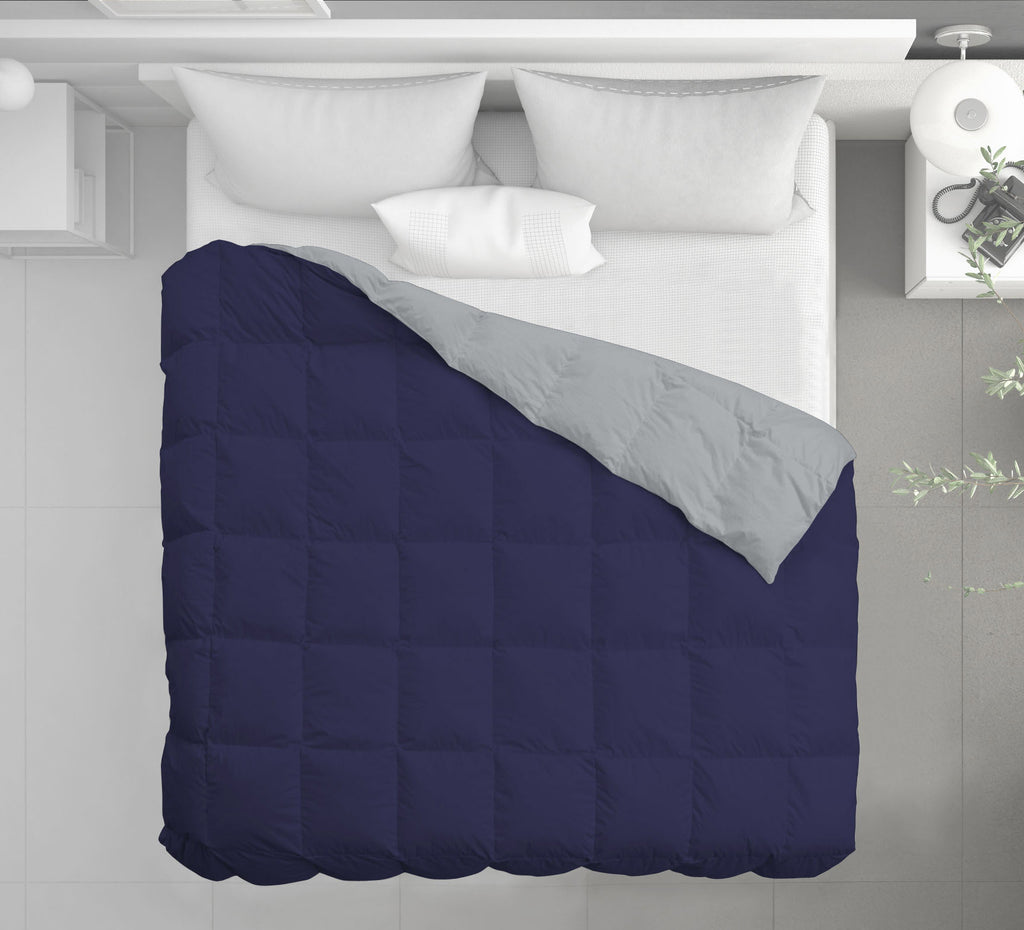 Couette Hiver en Plumes de Canard 350gr Double Face Bleu Foncé/Gris Clair