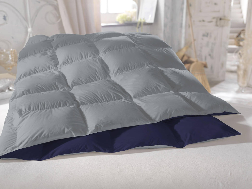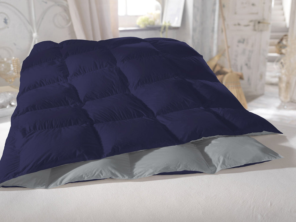 Couette en Plumes de Canard 350gr Double Face Bleu Foncé/Gris Clair