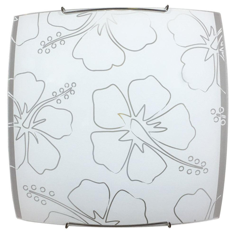 Plafonnier 1xE27 Cadre Blanc Plaque Verre Sérigraphié Fleur E-Energy Delia