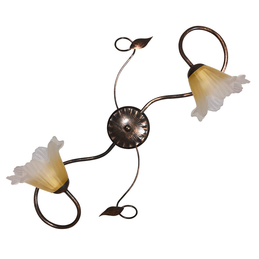 Plafonnier 2xE14 Marron Cadre Cuivre Shaded Verre Dépoli Ambre E-Energy Melania