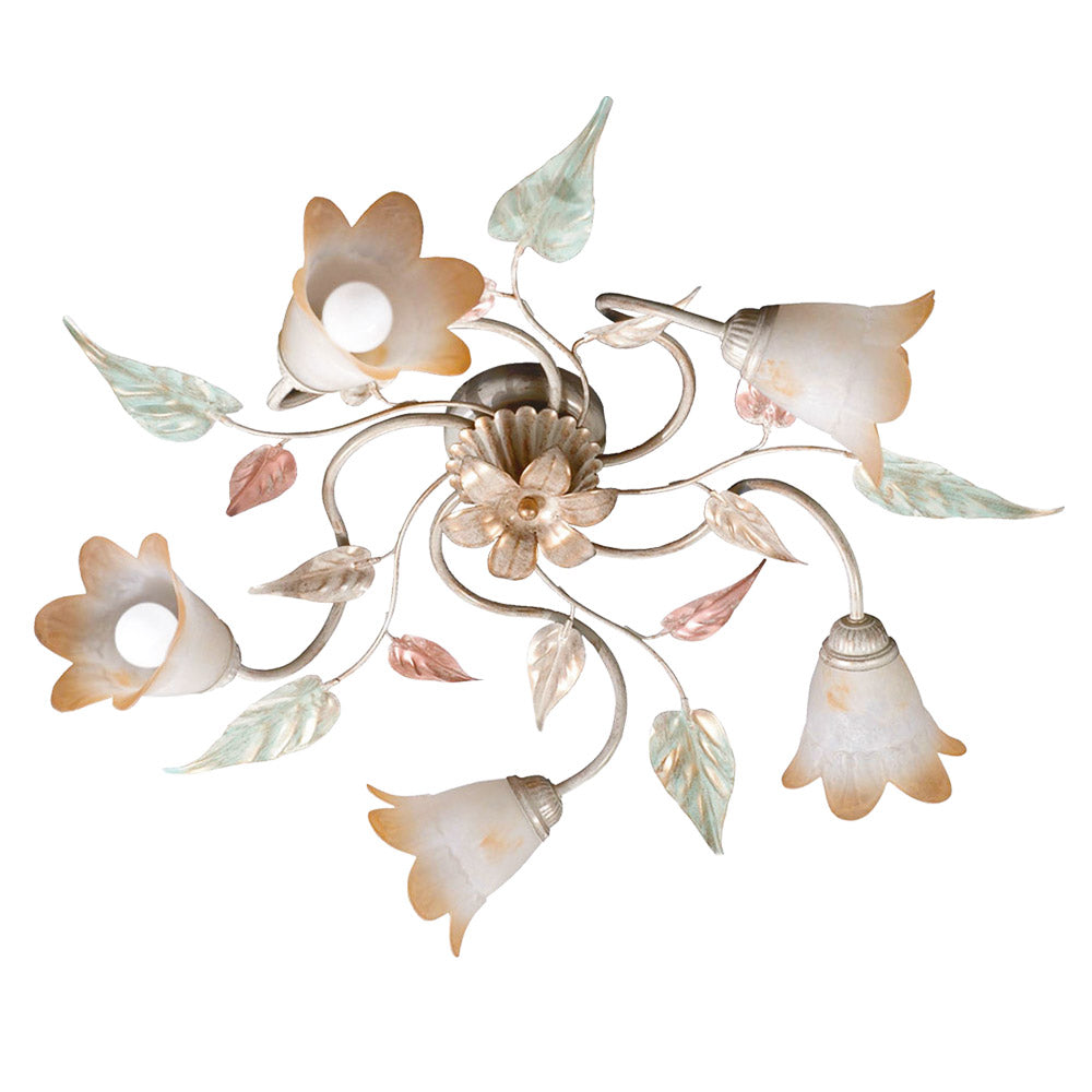 Plafonnier 5xE14 Cadre Vieilli Blanc Ombré Verre Ambre E-Energy Giulia