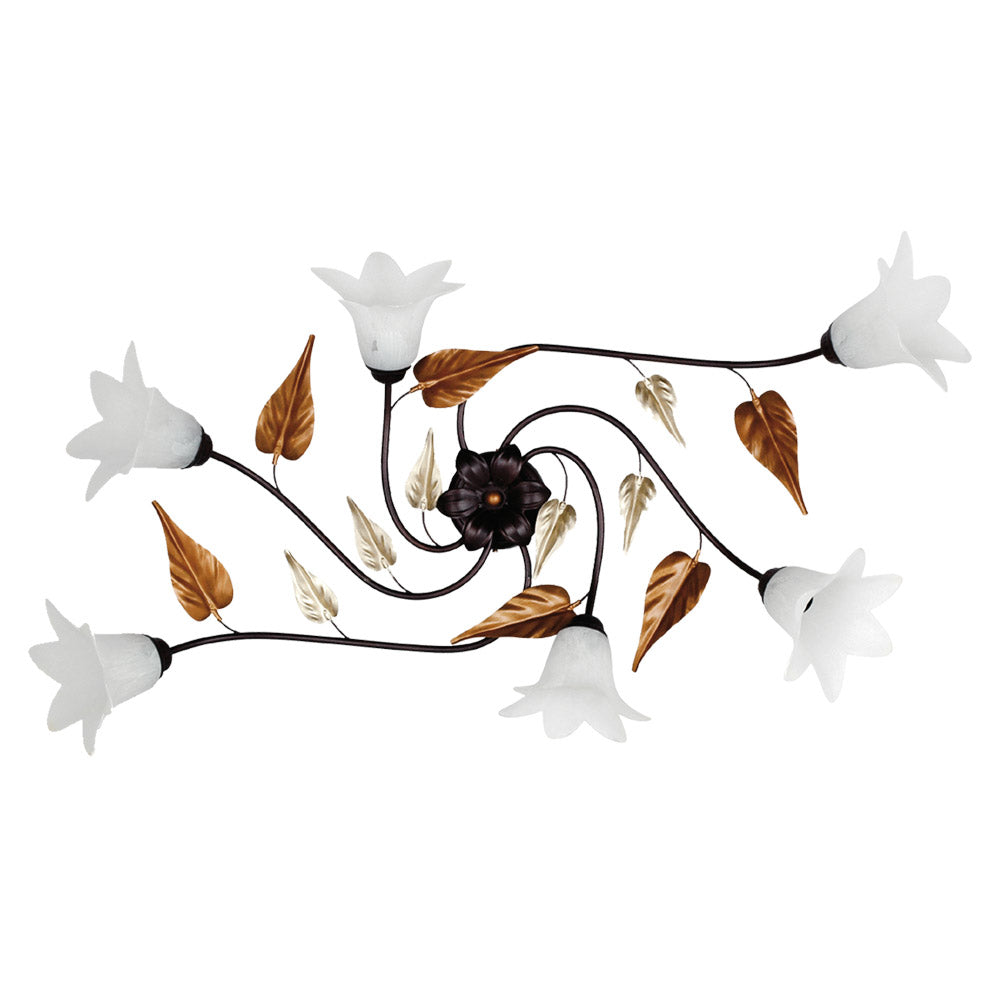 Plafonnier 6xE14 Monture cuivre marron Verre paille E-Energy Giorgia