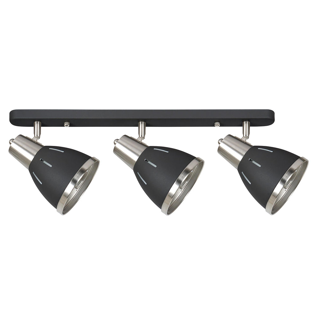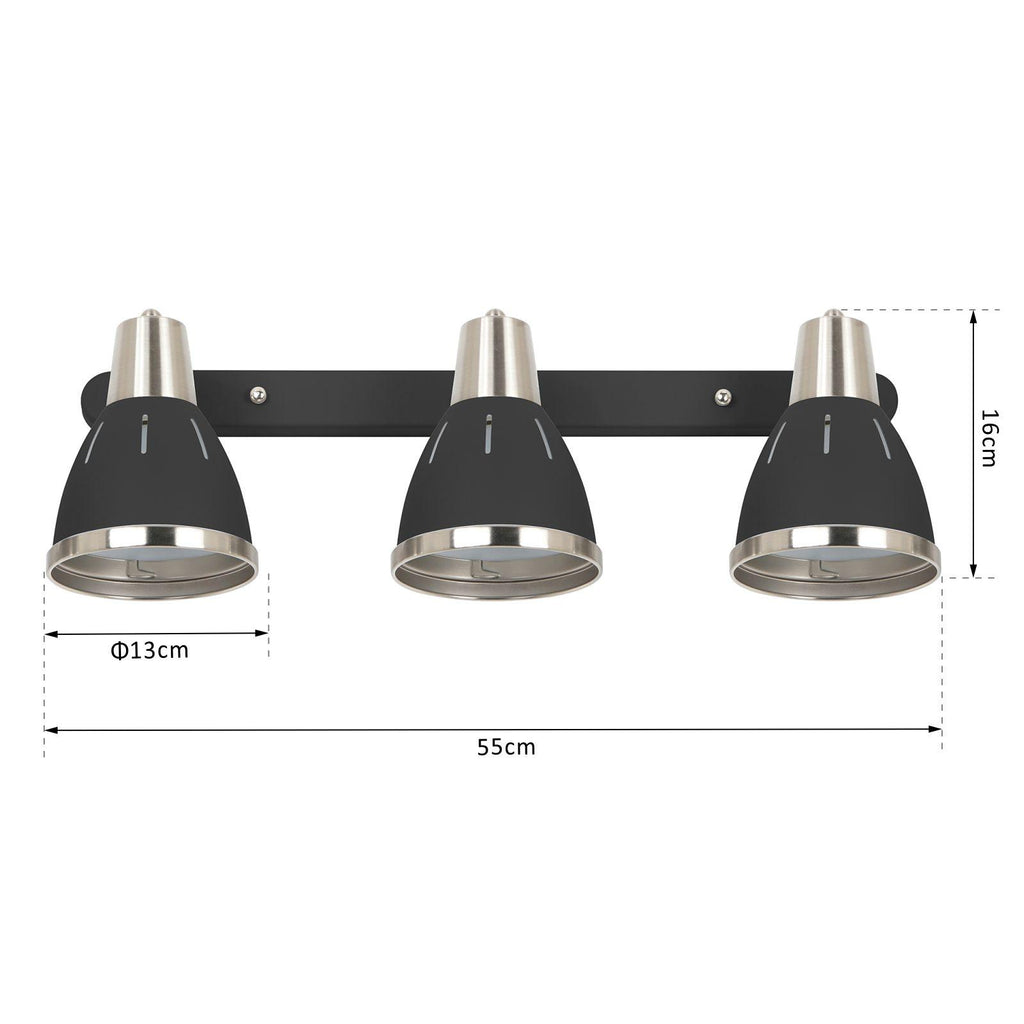 Plafonnier avec 3 Spots de Plafond LED Orientables en Métal Chromé Noir Ø13x16x55 cm