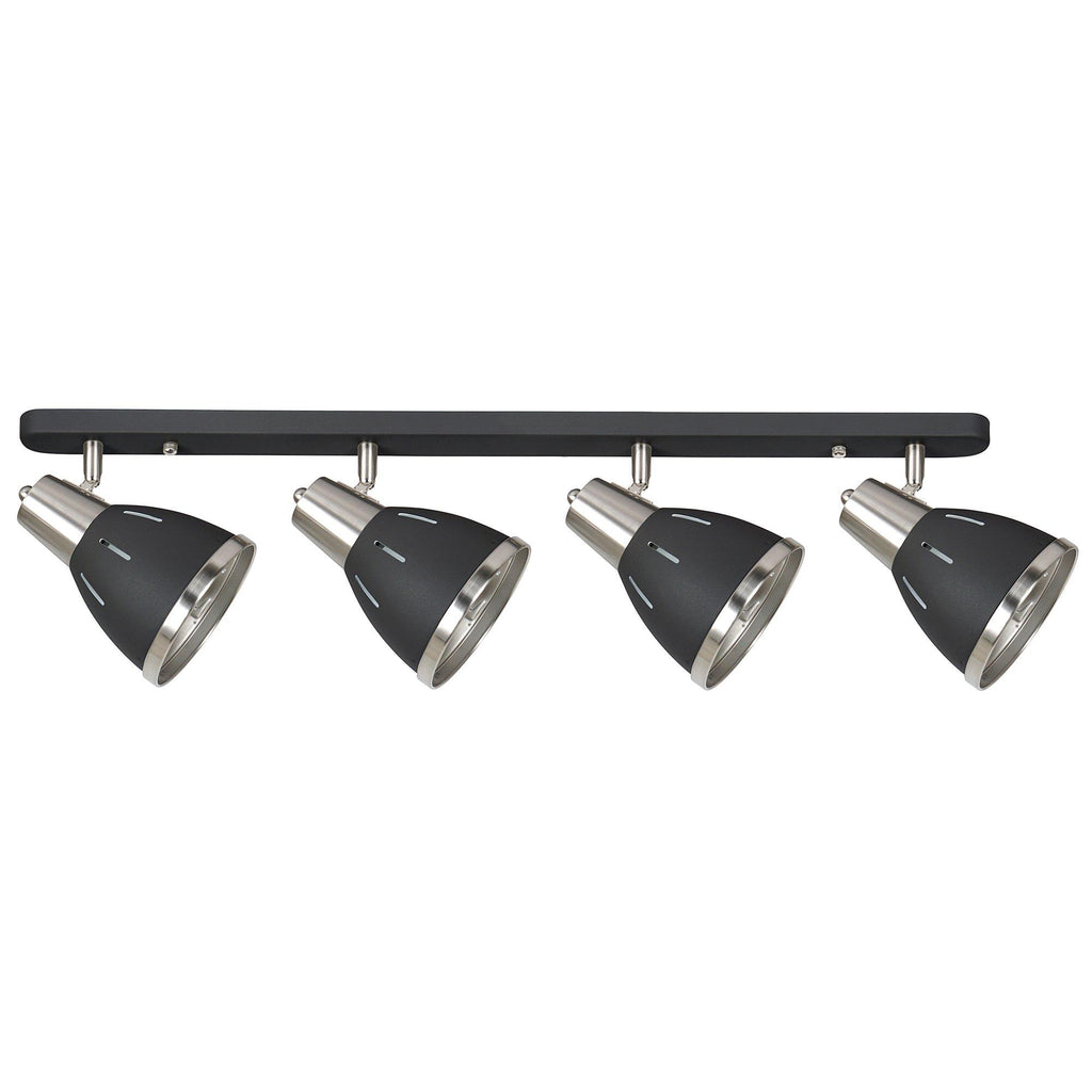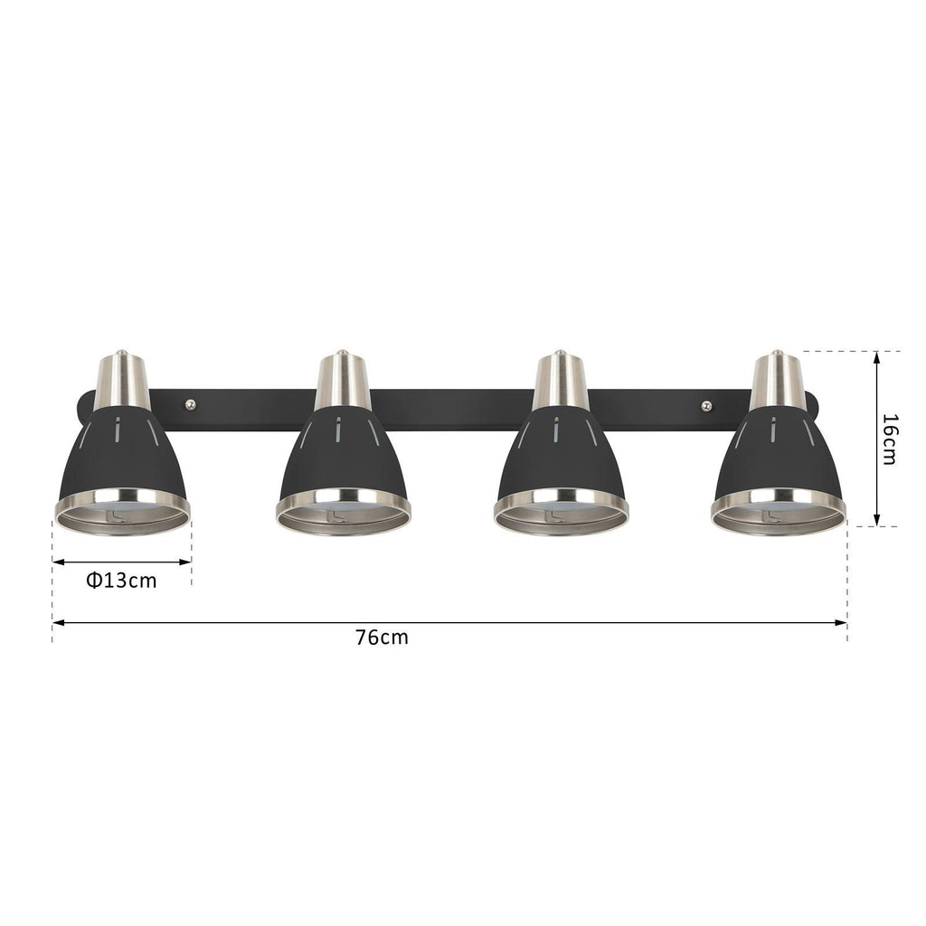 Plafonnier avec 4 Spots de Plafond LED Orientables en Métal Chromé Noir Ø13x16x72 cm