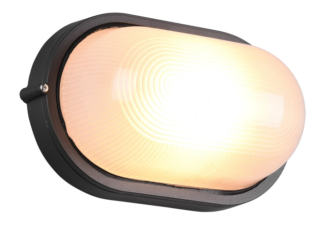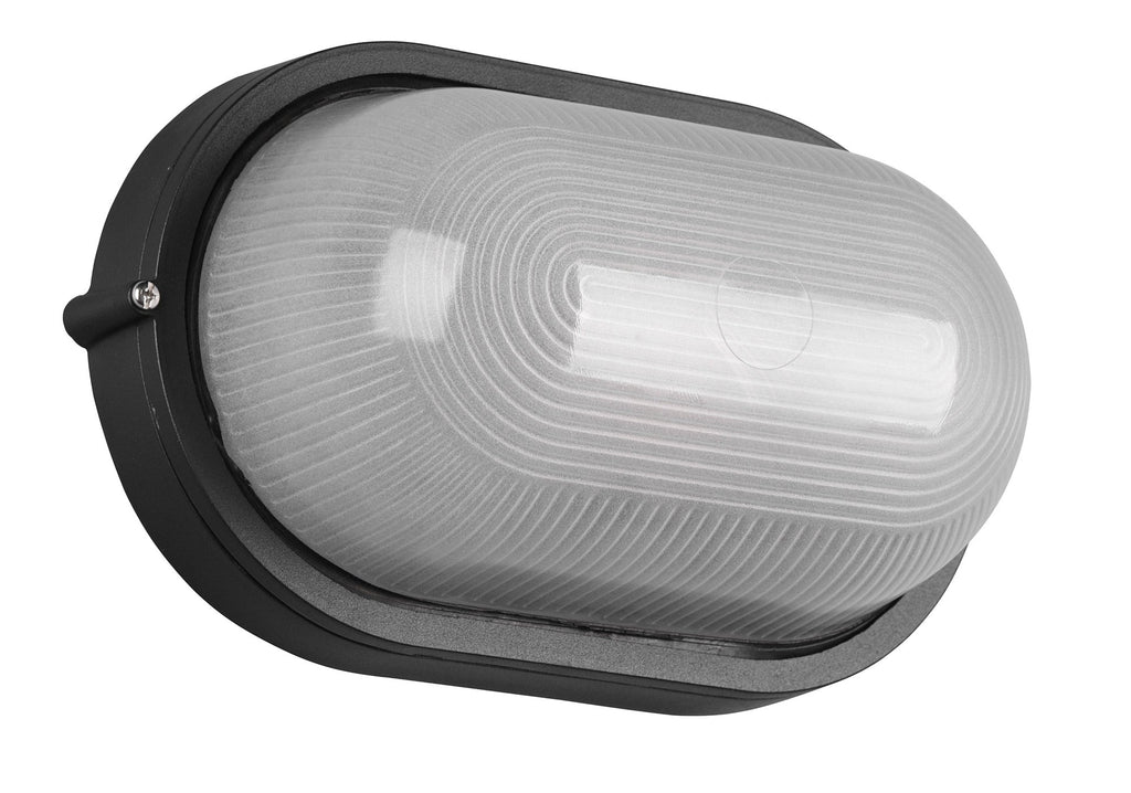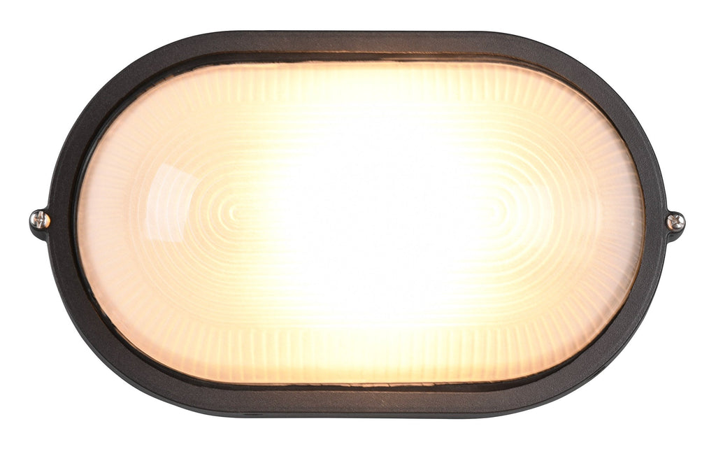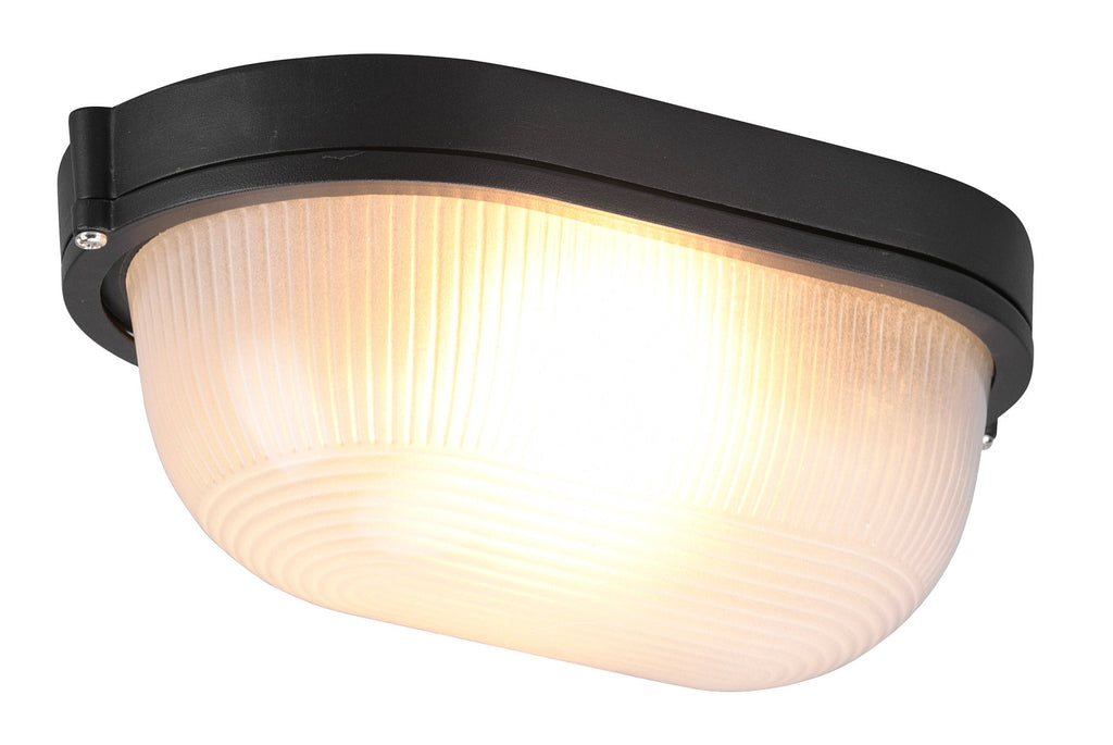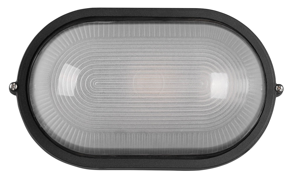 Alano Plafoniera Applique Da Esterno Ovale Fusione di Alluminio Nera e Vetro Satinato L.28,3Cm Ip44