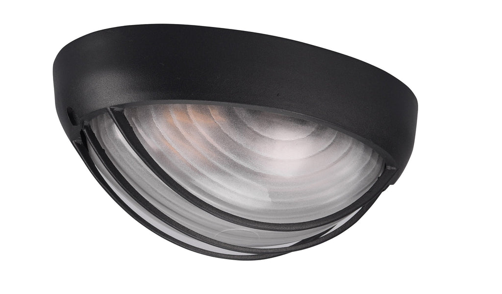Tirso Plafoniera Applique Da Esterno Ovale Fusione di Alluminio Nera con Griglia e Vetro Satinato L.21,3Cm Ip44