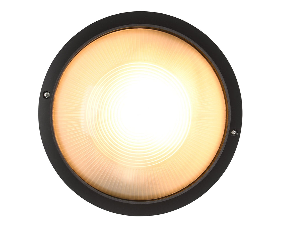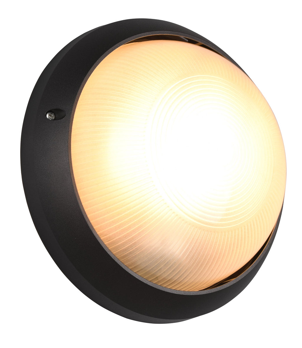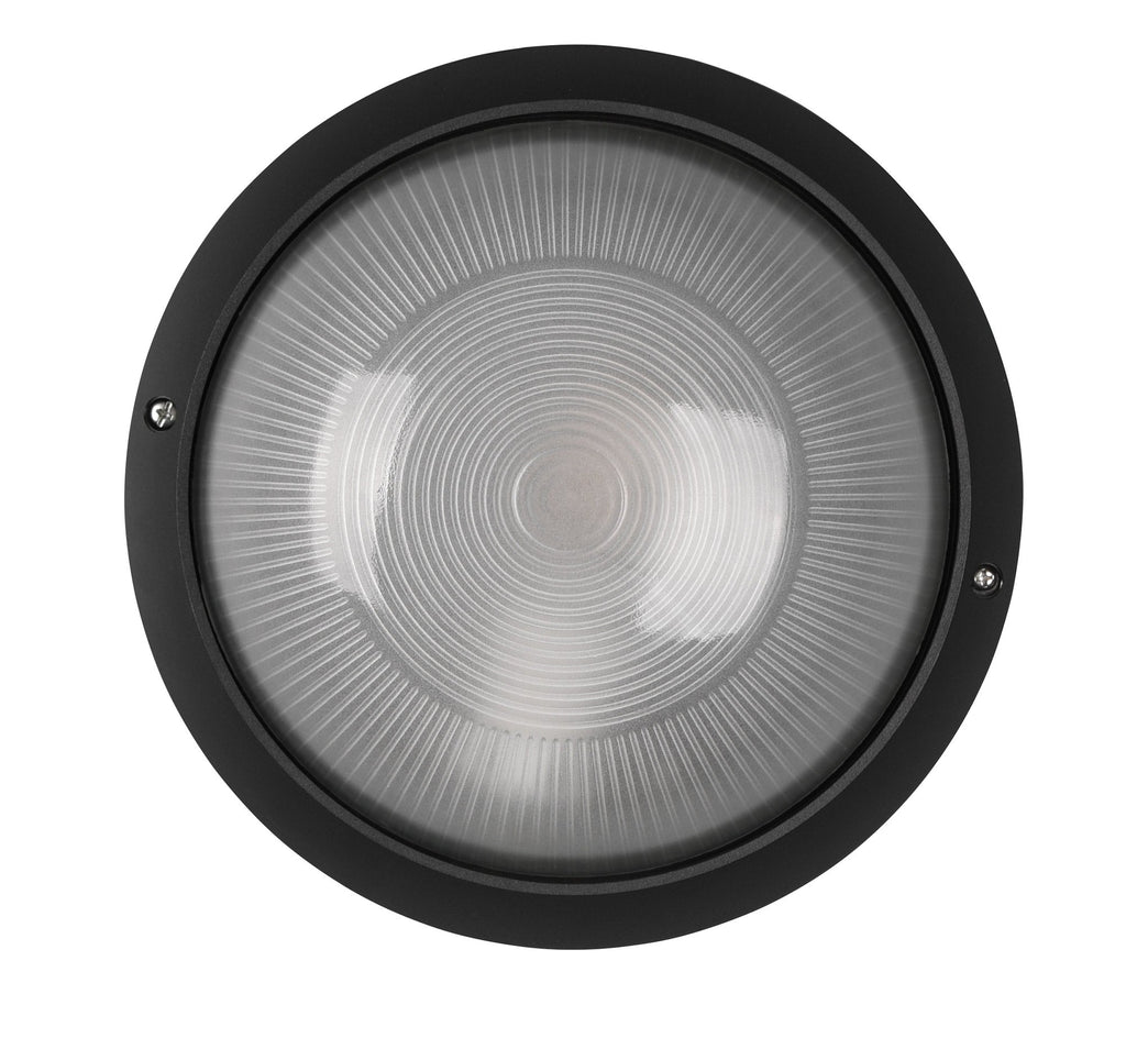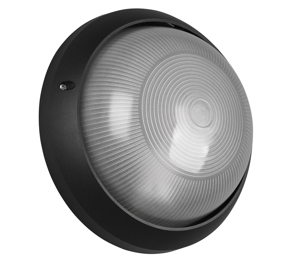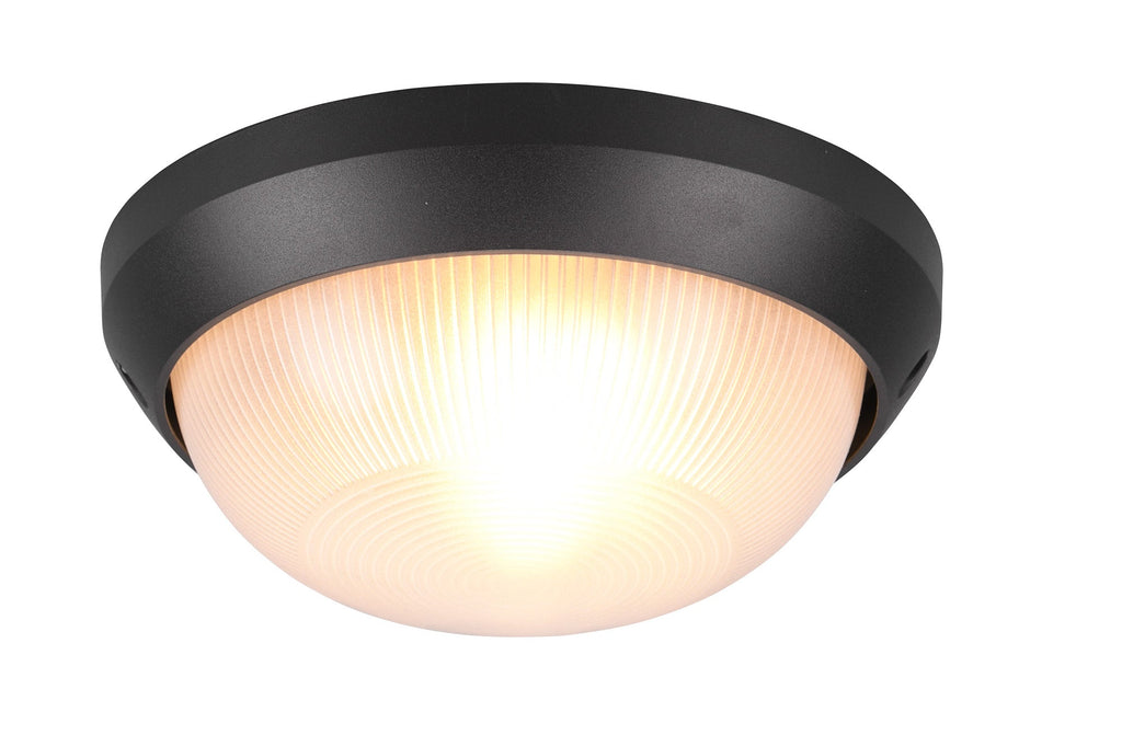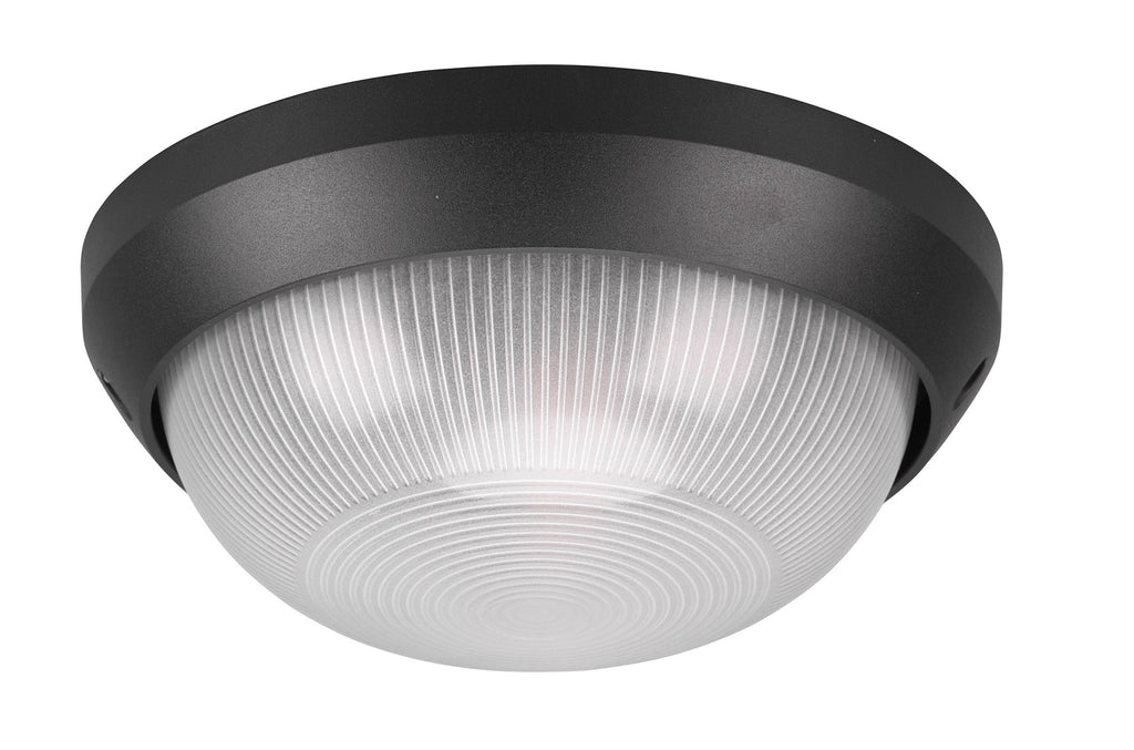 Torolo Plafoniera Applique Da Esterno Tonda Fusione di Alluminio Nera e Vetro Satinato D. 25,8Cm Ip44