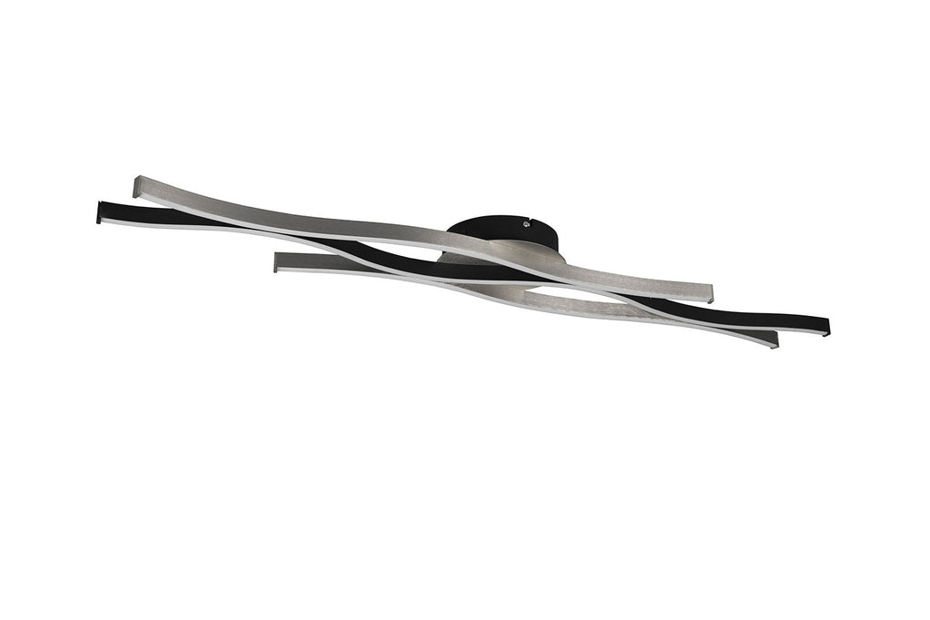 Blaze Plafoniera Led Ondulata Metallo Alluminio e Nero con Regolazione Intensità e Temperatura di Colore Della Luce con Interruttore L. 108Cm