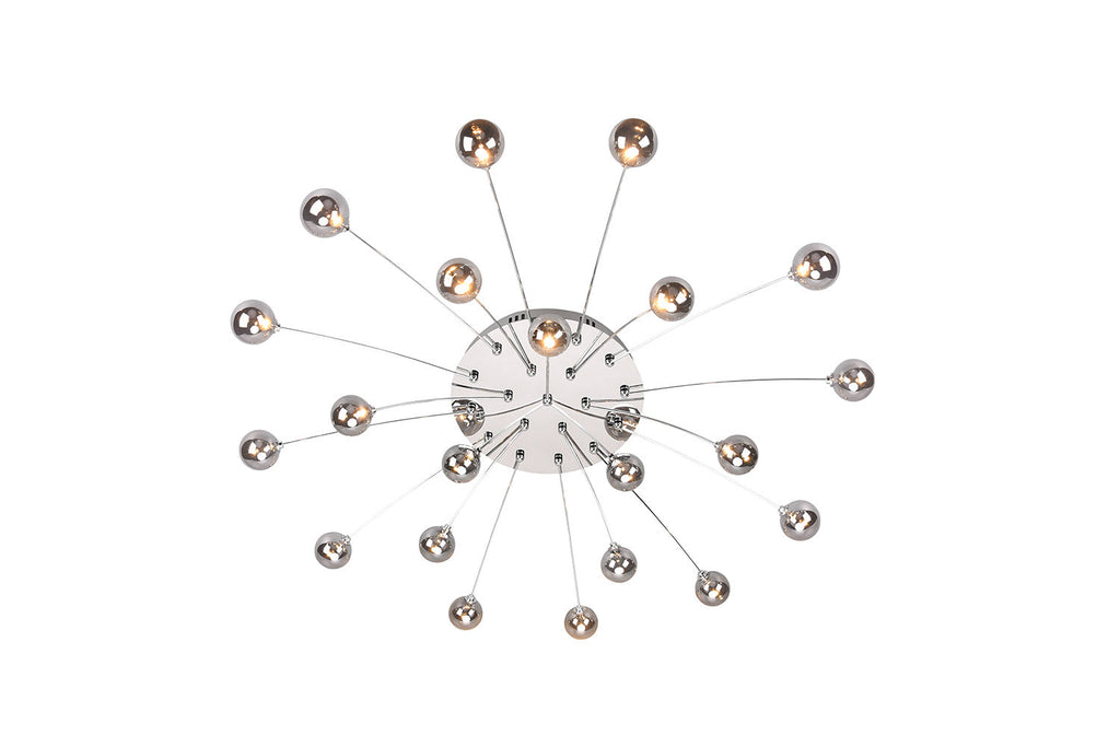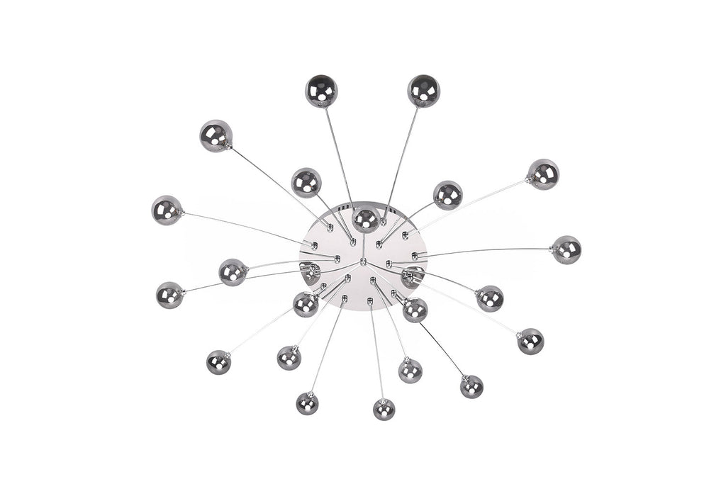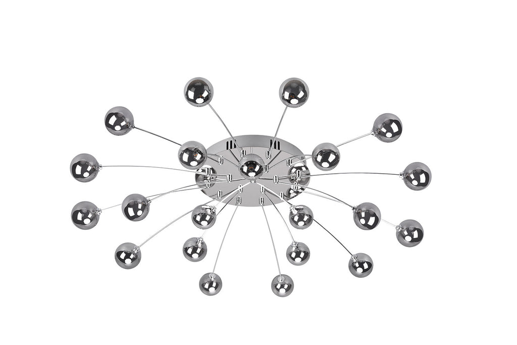 Bullet Plafoniera Led Metallo Cromato con 21 Diffusori Vetro Fume' Cromato Dimmerabile con Interruttore A Parete D. 97Cm