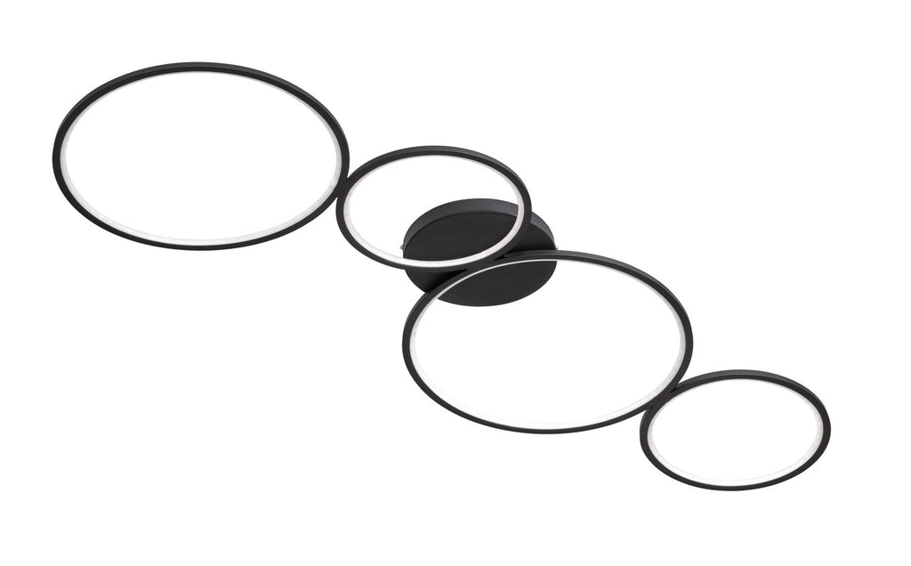 Rondo Plafonnier Led 4 Cercles Métal Noir Mat Avec Variation D'Intensité Avec Interrupteur Mural L. 97Cm