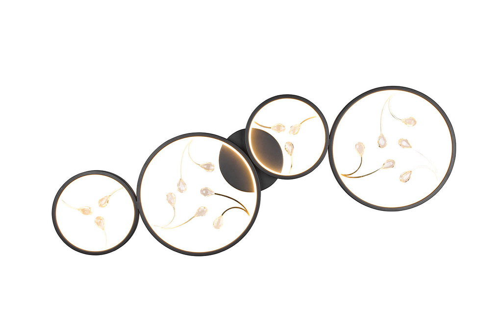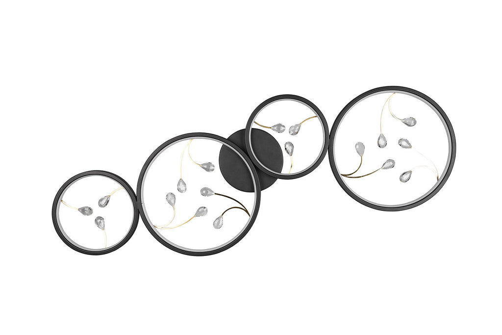 Groovy Plafoniera Led 4 Cerchi con Decori Gemme Trasparenti Nera con Funzione di Regolazione Intensità con Normale Interruttore A Parete L. 96Cm