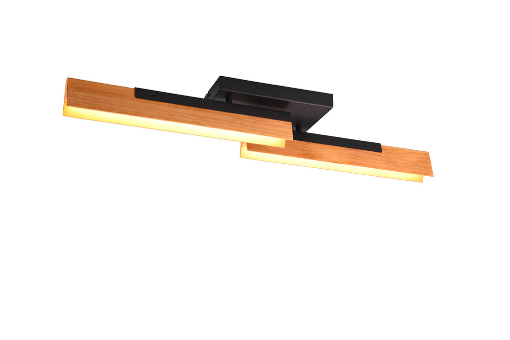 Kerala Plafoniera Led Orientabile Doppio Diffusore Legno Naturale e Metallo Nero Dimmerabile con Interruttore L. 83Cm
