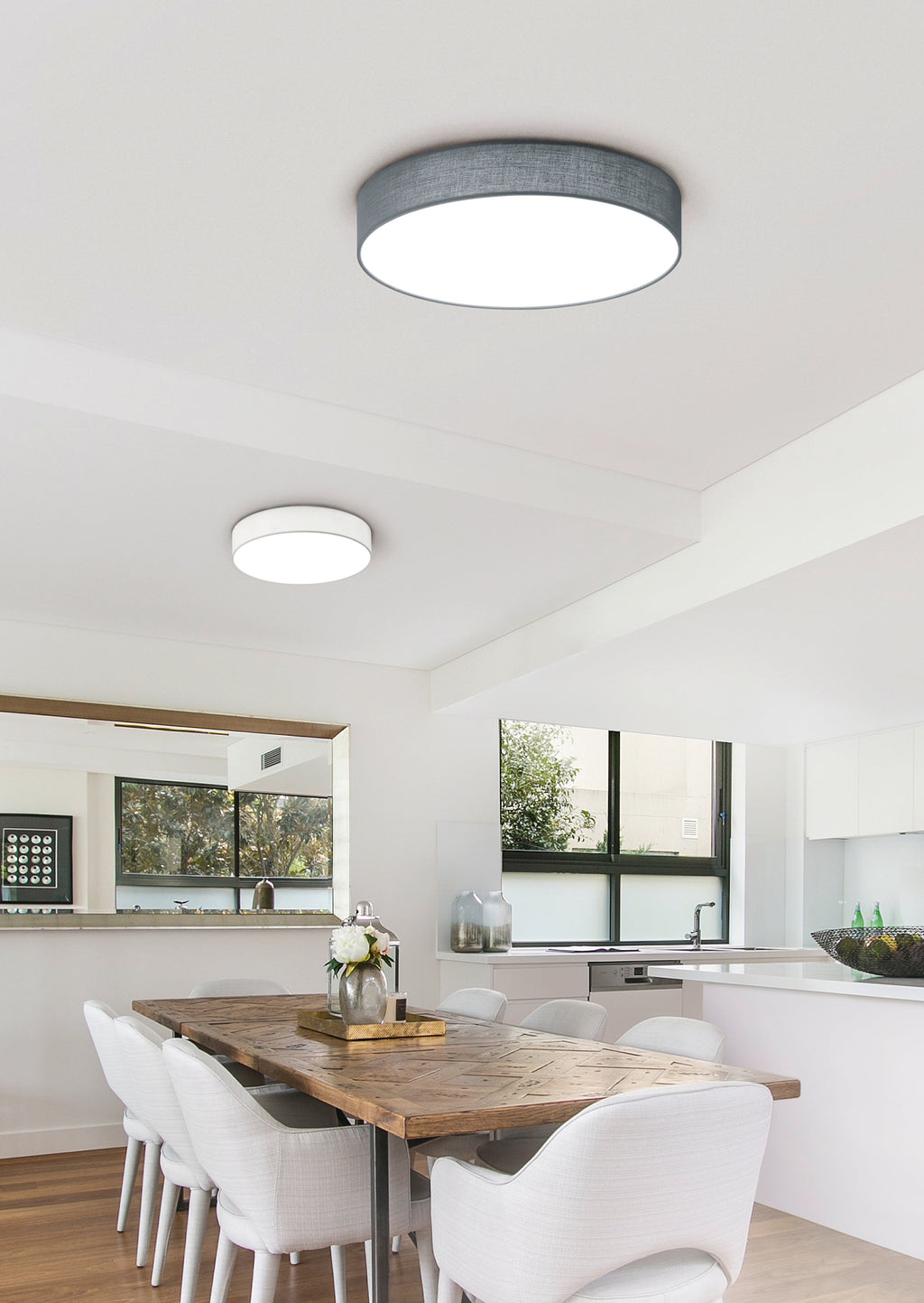 Lugano Plafonnier Led Diffuseur Tissu Gris Et Acrylique D. 40Cm