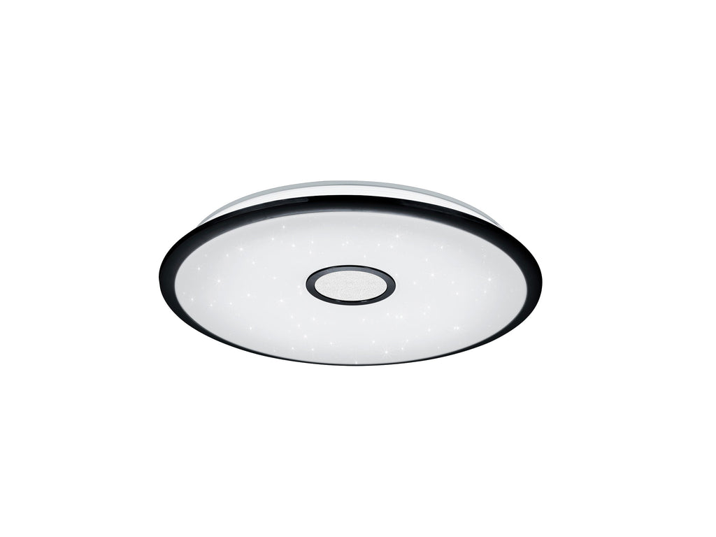 Okinawa Plafonnier Led Diffuseur Blanc Effet Ciel Étoilé Avec Bord Noir Mat Et Télécommande Multifonction D.65