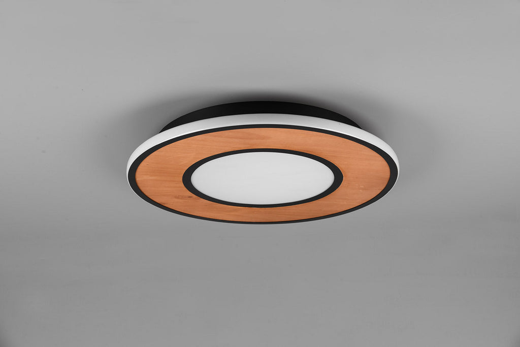 Deacon Plafoniera Led Metallo Nero e Inserto Legno Naturale Dimmerabile con Interruttore D. 50Cm