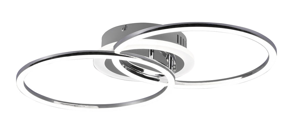 Venida Plafoniera Led Doppio Cerchio Cromato con Luce Centrale Regolazione Intensità Interruttore L.58Cm
