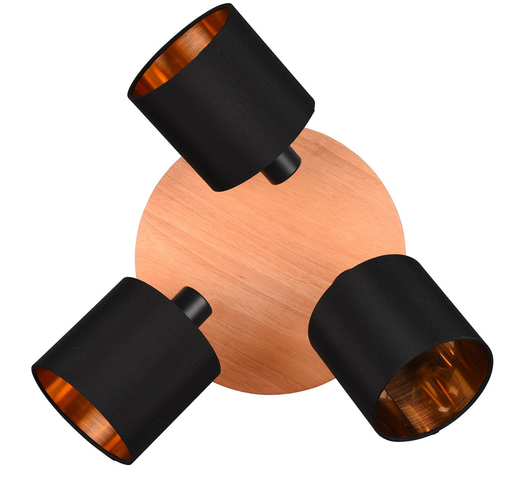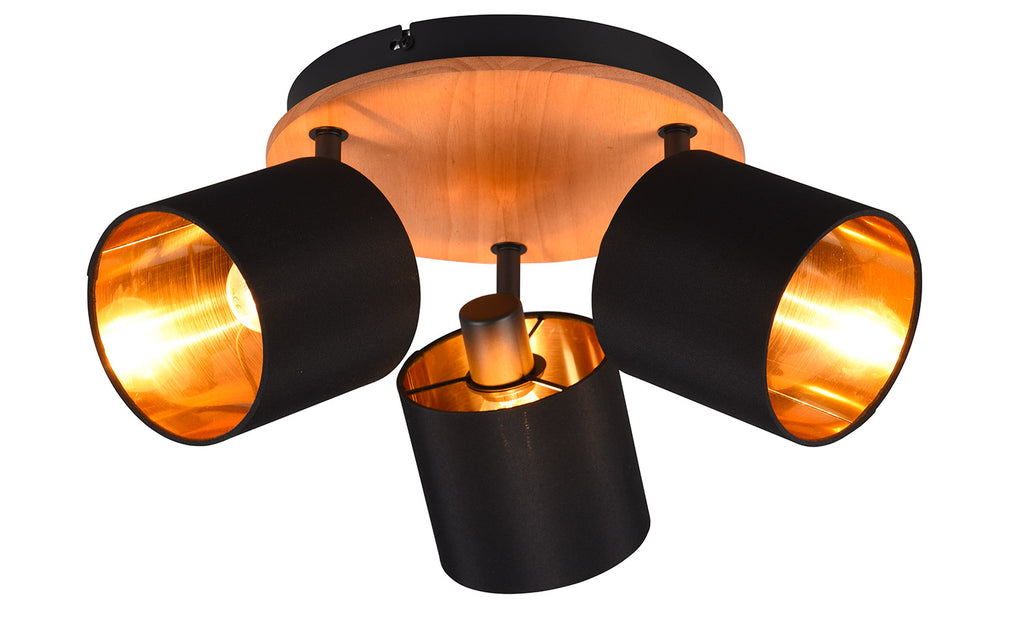 Tommy Plafoniera 3 Spots Base Legno con Paralumi Nero e Oro D. 46,5Cm