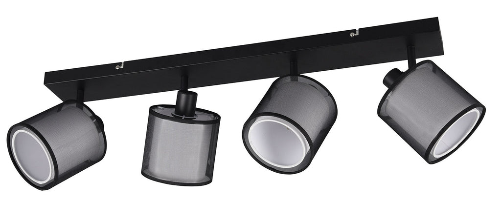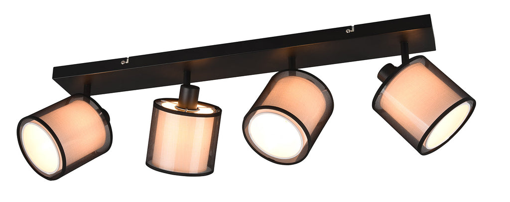 Burton Barra 2 Spots Orientabili Metallo Nero Paralume Bianco e Diffusore Esterno Traforato Nero L. 72Cm