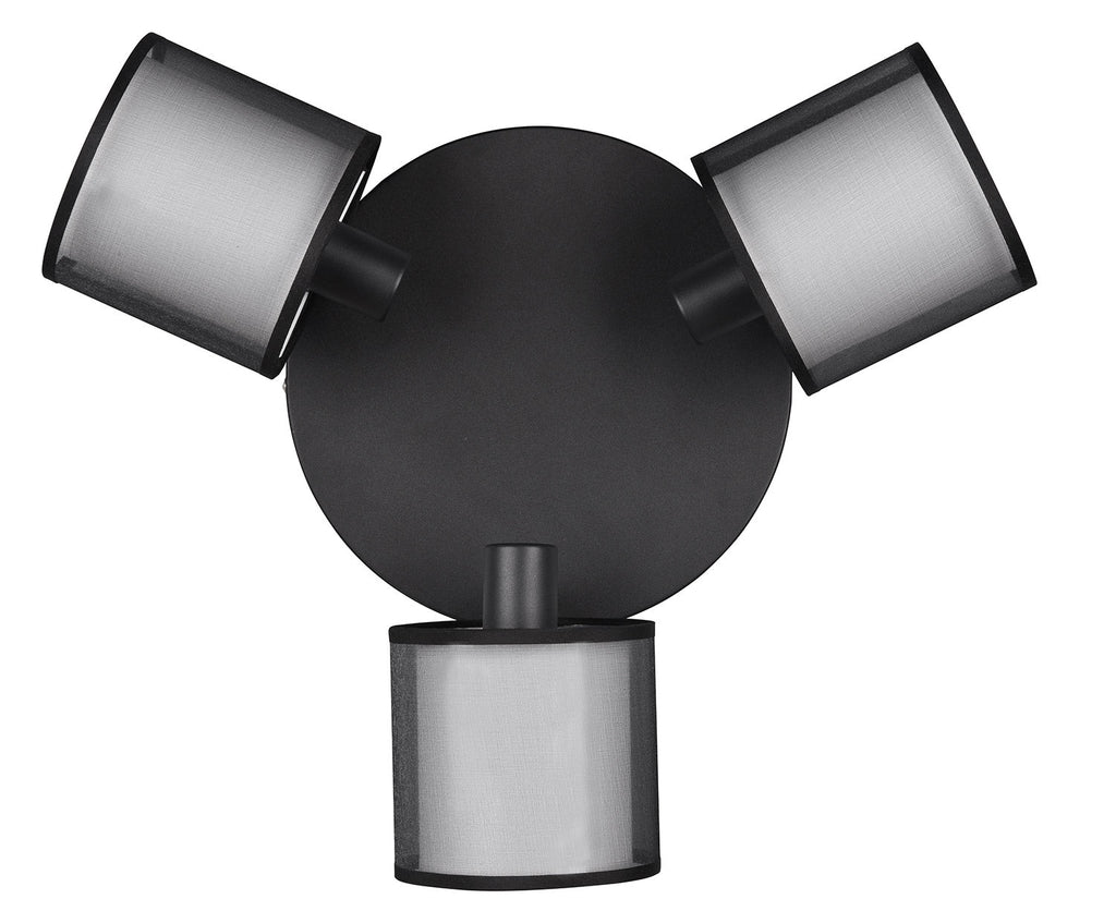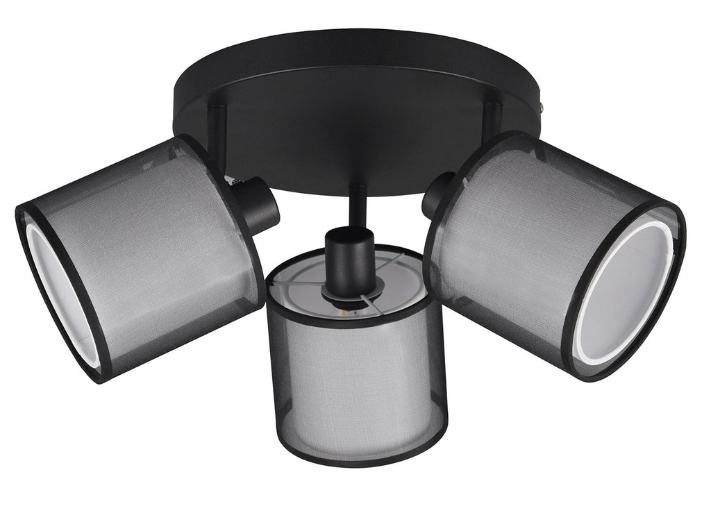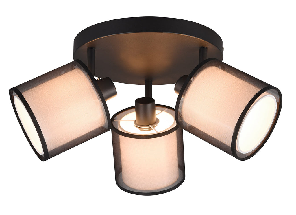 Burton Plafoniera 3 Spots Orientabili Metallo Nero Paralume Bianco e Diffusore Esterno Traforato Nero D. 50Cm
