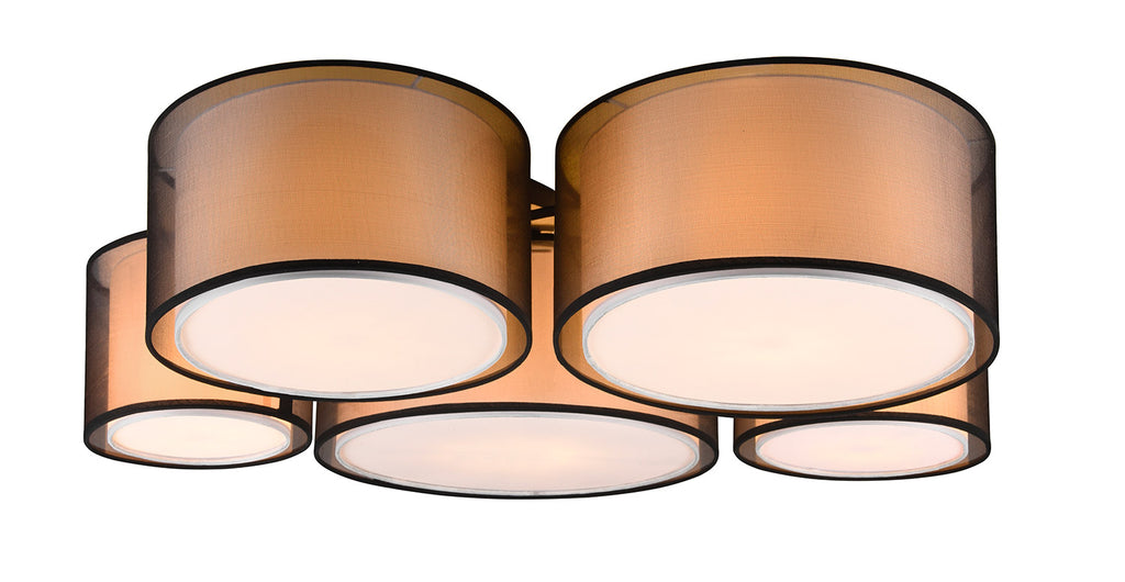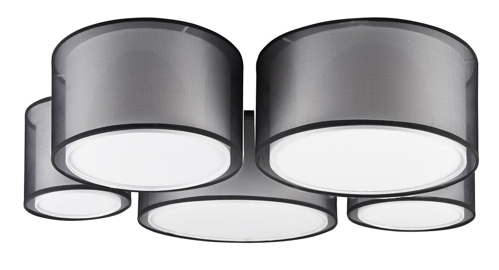 Burton Plafoniera Metallo Nero 5 Paralumi Bianchi e Diffusori Esterni Traforati Nero D. 90Cm