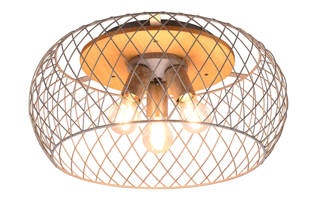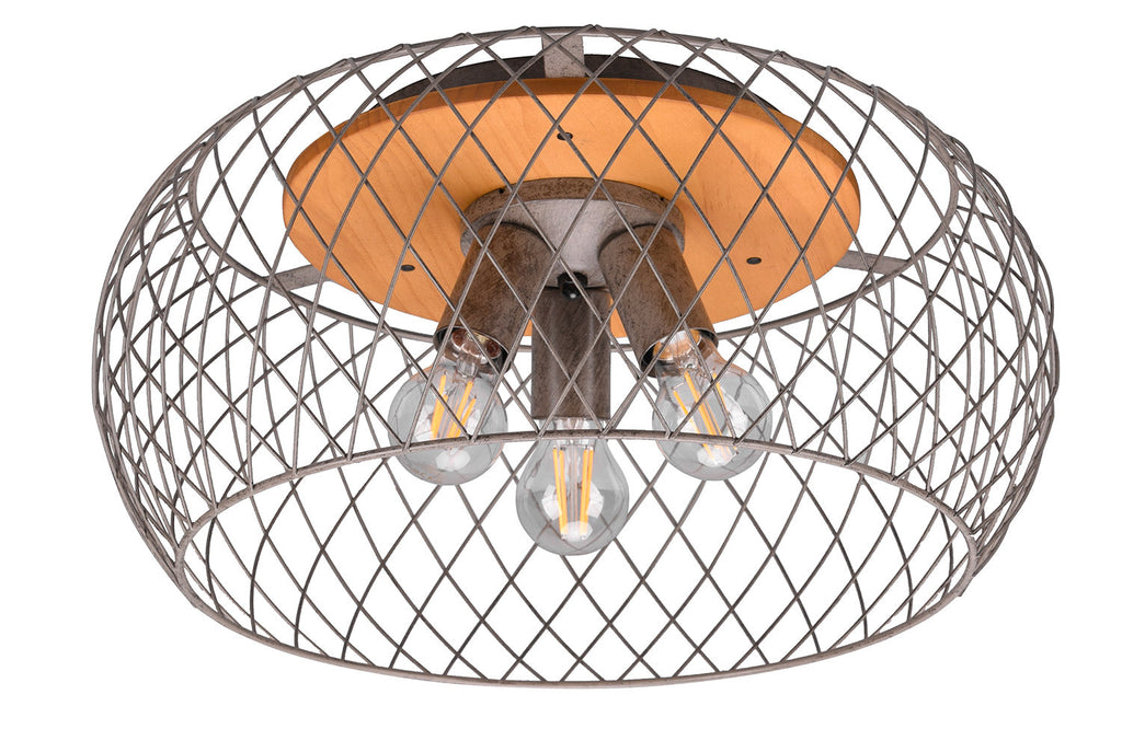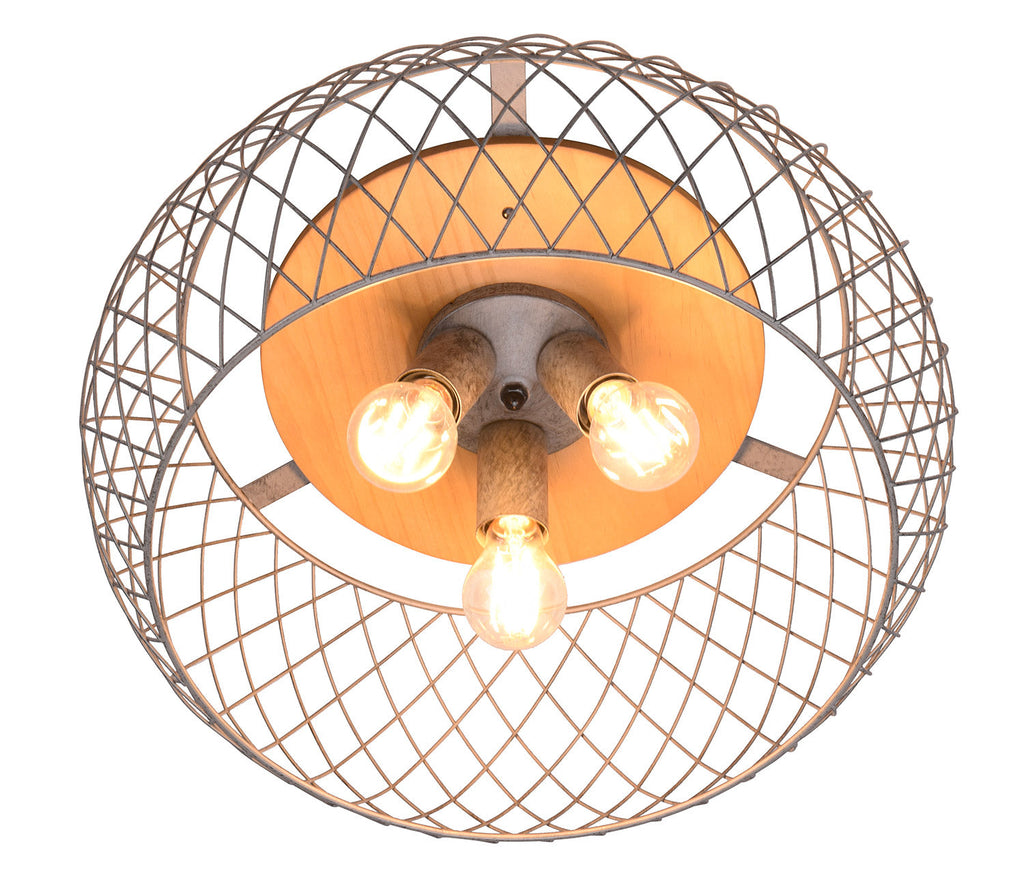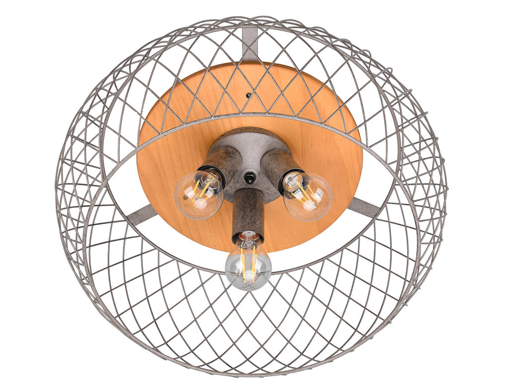 Tamil Plafoniera Metallo Acciaio Anticato e Legno Naturale D. 50Cm
