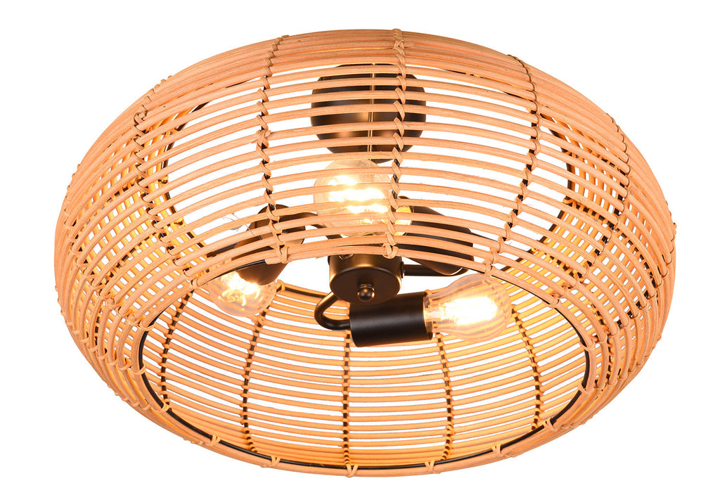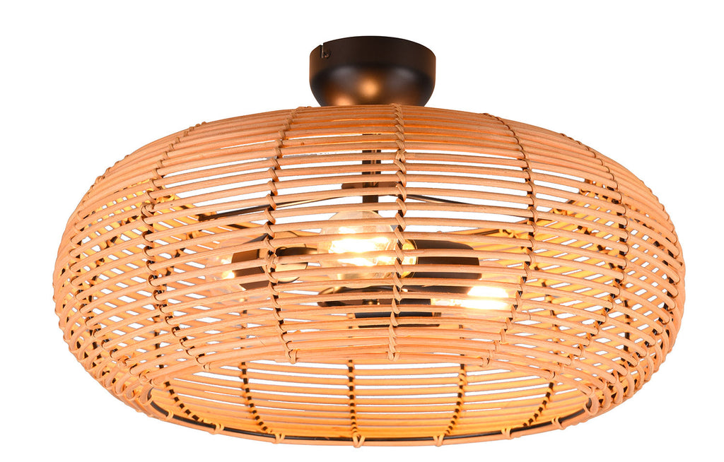 Inga Plafoniera Reticolo Rattan Naturale e Montatura Nera D. 50Cm
