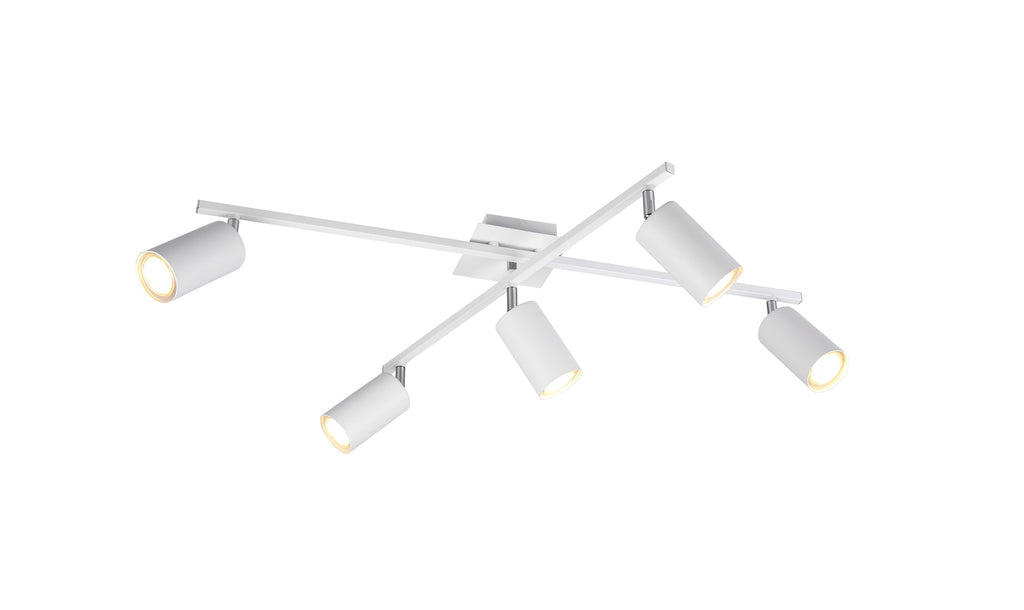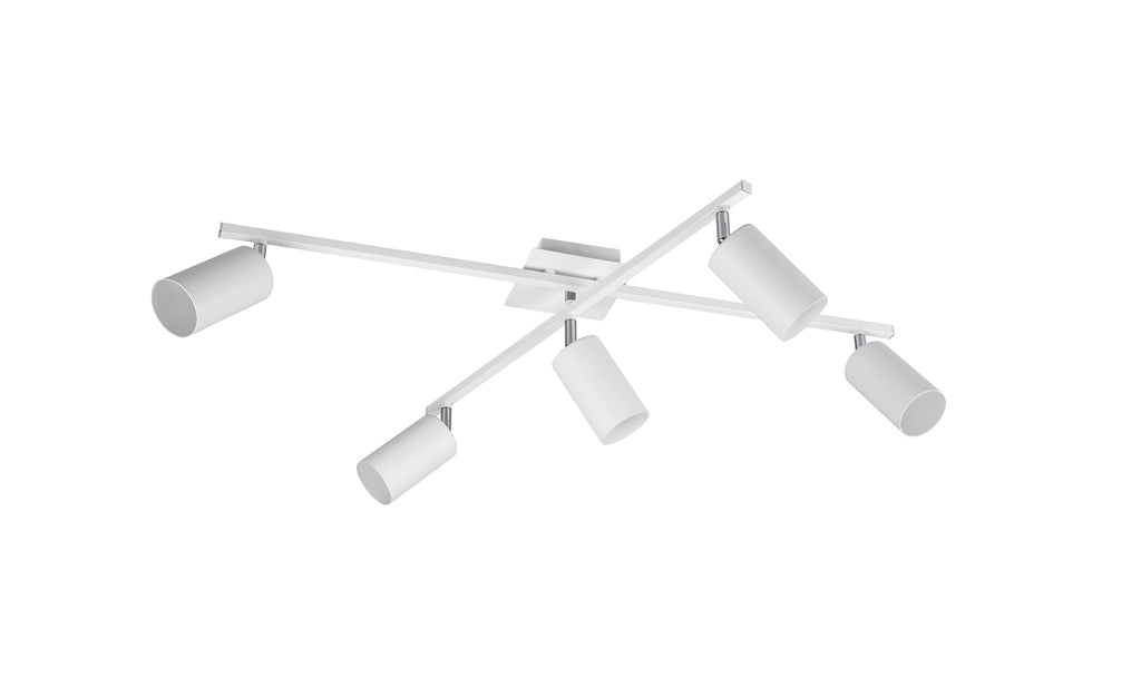 Marley Plafonnier 2 Barres Ajustables 5 Spots Métal Blanc Cylindre L. 77,5Cm