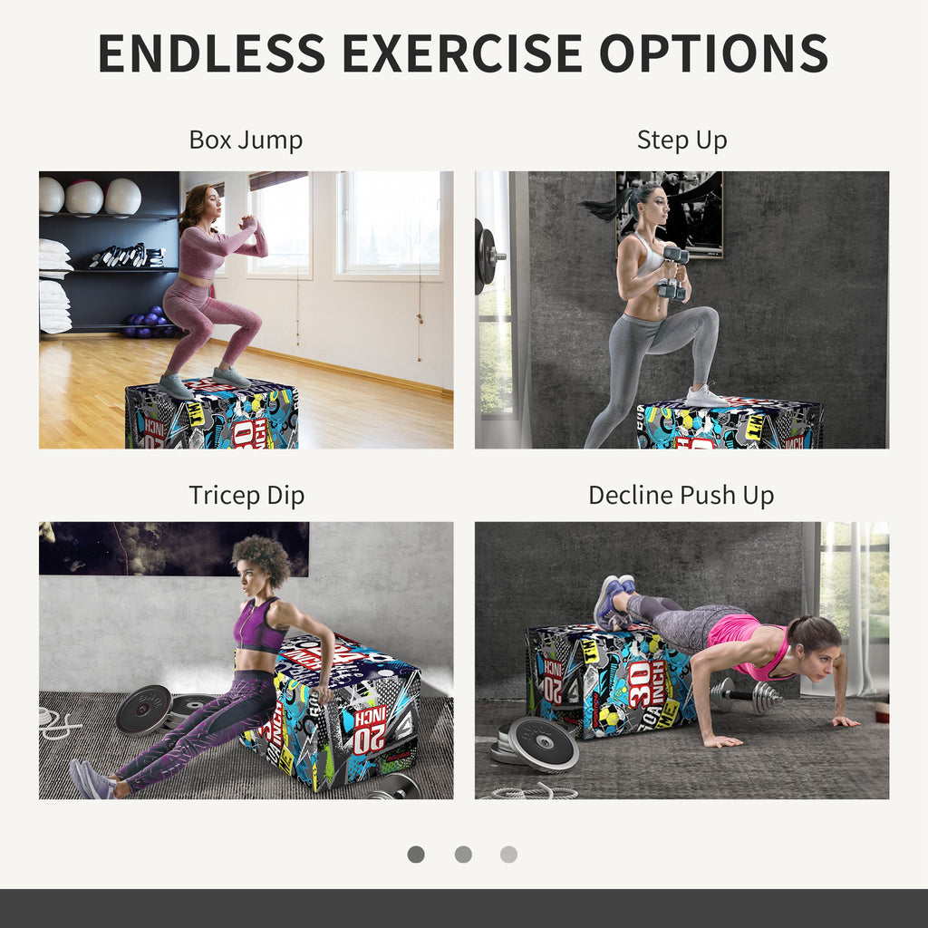 Plyo Box Attrezzo per Allenamento 3 Altezze 76x61x51cm Jumping Box Antiscivolo Multicolore