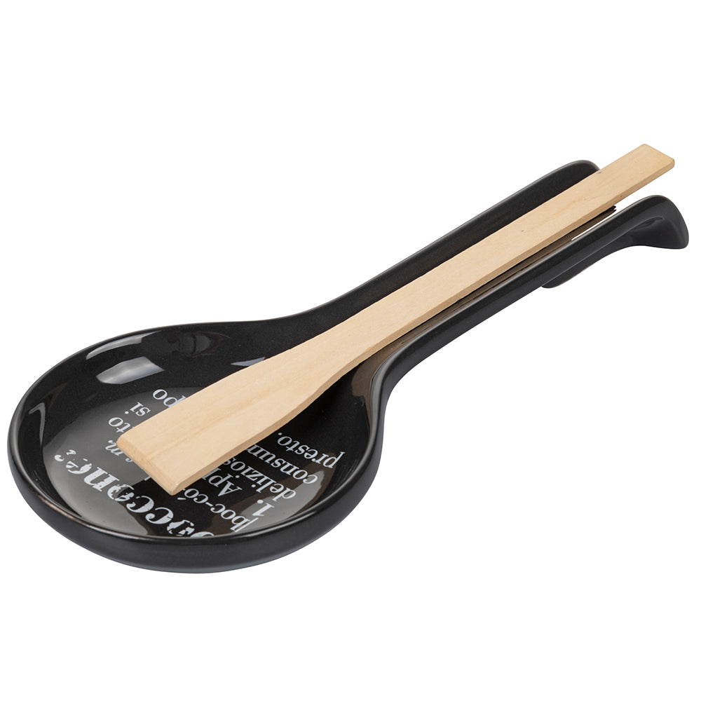 Repose-cuillère "Boccone" 28x12x3 cm en Céramique VdE Tivoli 1996 Victionary Noir