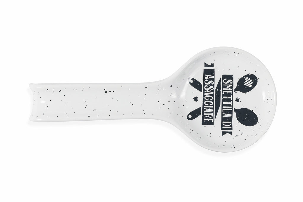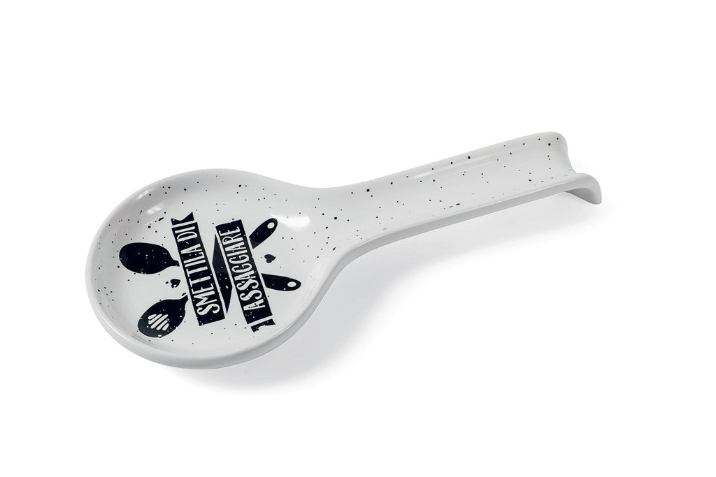 Amusant, le repose-cuillère qui vous convient. Une ligne capable d'apporter sympathie et praticité à vos cuisines : accompagnés d'écritures pleines d'esprit et de jolies décorations, les repose-cuillères ont des lignes modernes et essentielles et sont parfaits pour n'importe quel décor. À chaque utilisation, ils vous feront sourire et contribueront à faire de la cuisine un environnement fonctionnel et amusant.