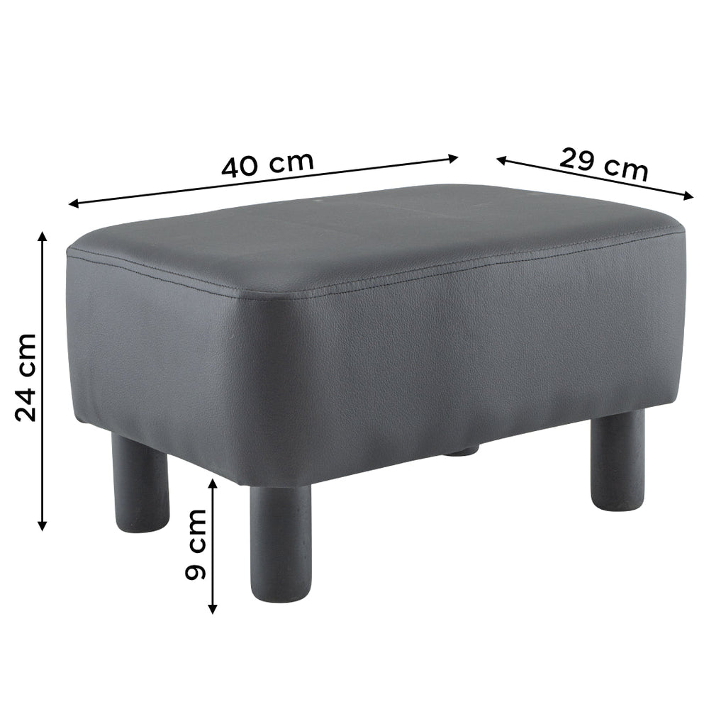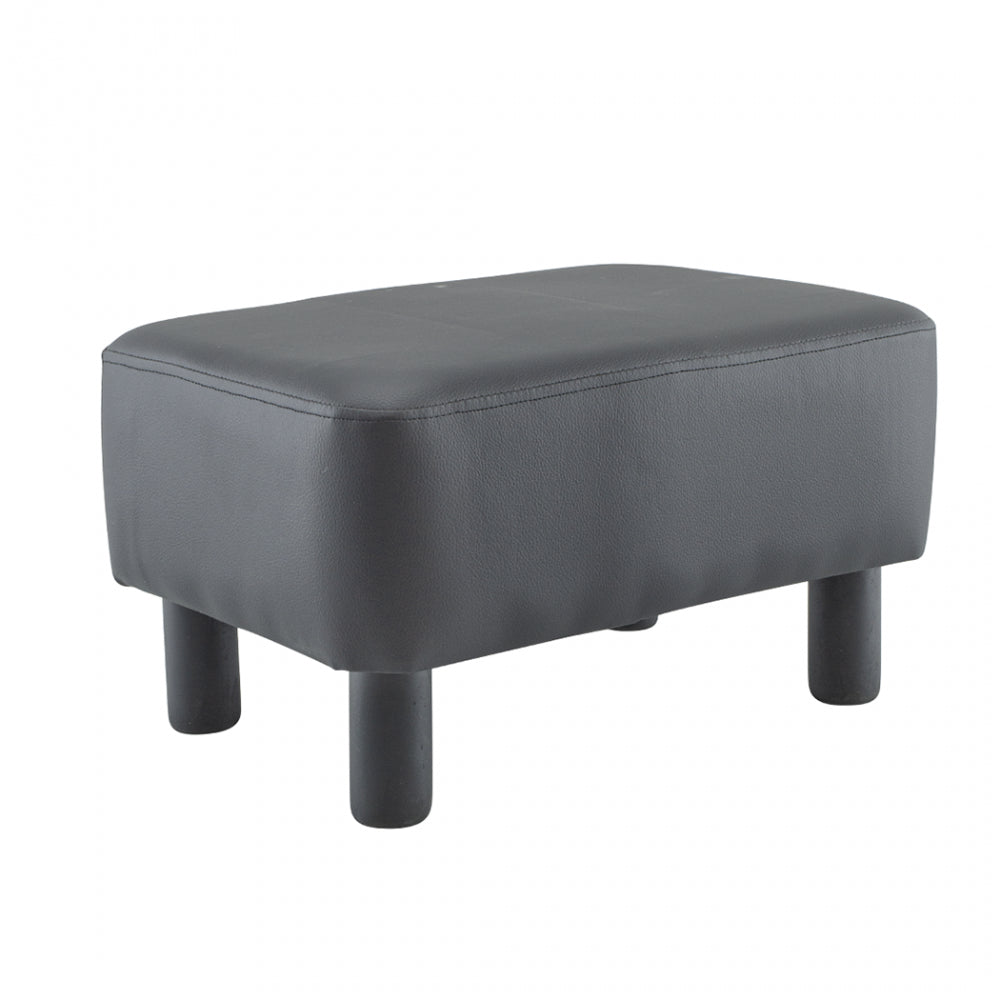 Tabouret Pouf Rectangulaire en Simili Cuir Pieds en Bois Noir