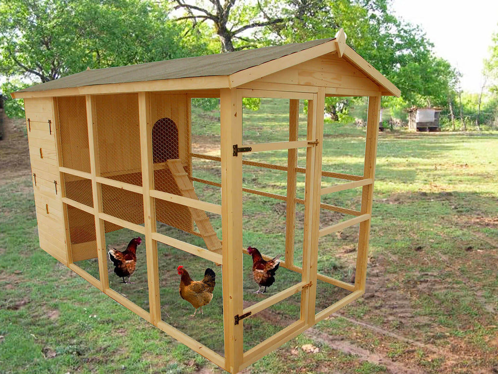 Poulailler de jardin 175x348x204 cm pour 8-12 poules en bois naturel