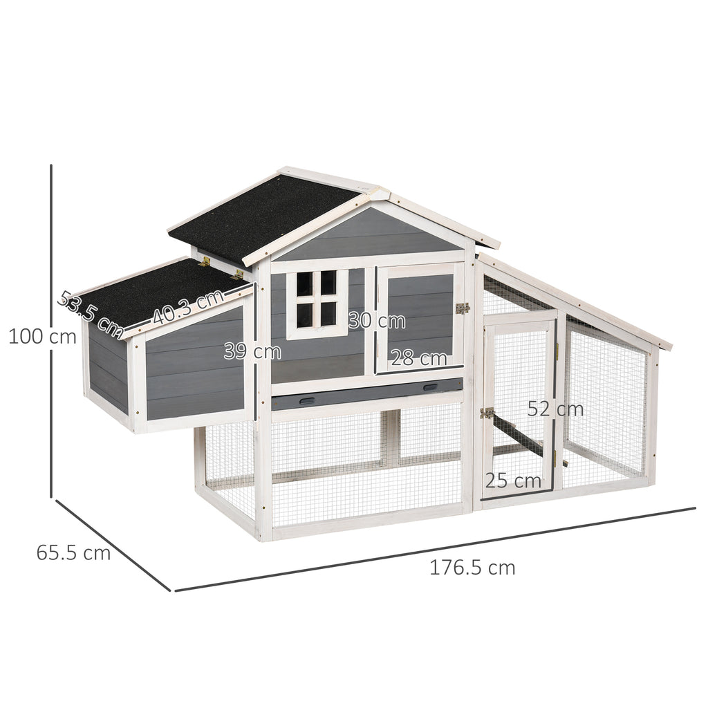 Poulailler extérieur cage à poules 176,5x65,5x100 cm avec enclos ouvert gris