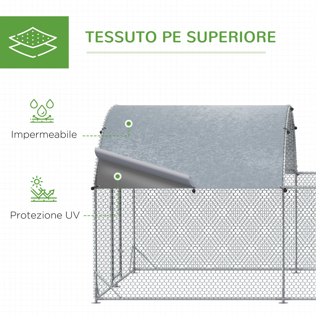 Laissez vos animaux se déplacer librement avec cette clôture. Conçu pour les animaux tels que les poules, les lapins, les canards et autres, il est fabriqué avec un cadre et un treillis en acier galvanisé robustes, ce qui le rend résistant à une utilisation en extérieur. La structure est équipée d'une couverture qui protège vos animaux du soleil et de la pluie légère.