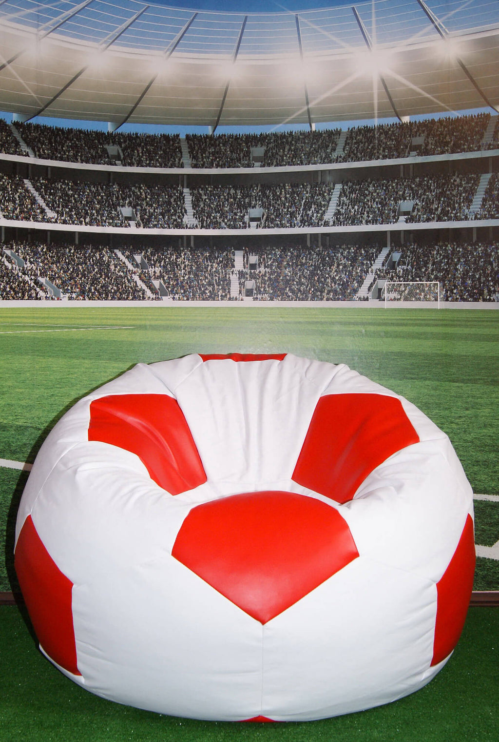 Pouf Pouf Ø100 cm en Faux Cuir Baselli Ballon de Football Blanc et Rouge