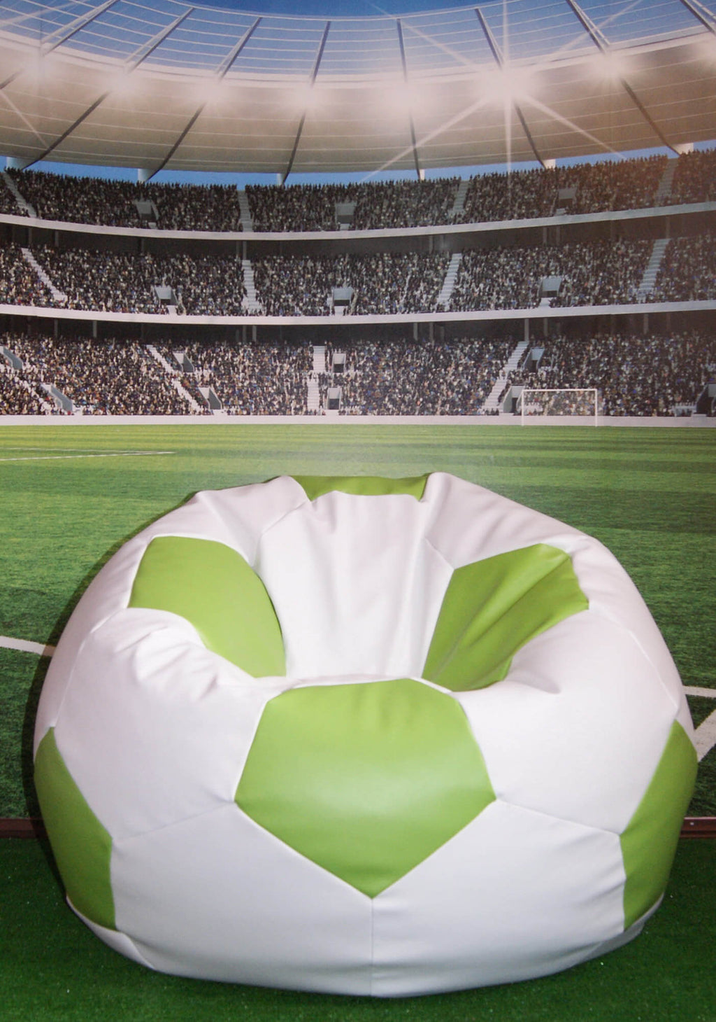 Pouf Pouf Ø100 cm en Faux Cuir Baselli Ballon de Football Blanc et Vert Citron