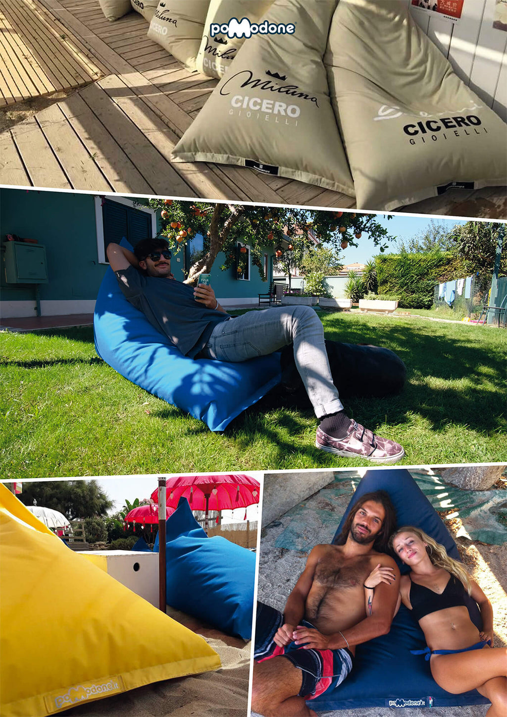 Les valises et les objets de détente sont les bagages les plus importants que les touristes emportent avec eux en vacances. Aucun besoin ne doit jamais être ignoré, tout comme les attentes de vos invités ne doivent jamais être ignorées. Chez Pomodone, nous le savons et nous nous soucions de créer des solutions de confort conçues pour tous les types d'établissements d'hébergement touristique. Milk , par exemple, est le pouf transat créé dans le but de vous faire toucher le ciel avec le doigt et de permettre à vos invités de se détendre et de récupérer l'énergie dépensée pendant les moments frénétiques de la vie quotidienne passés entre le stress et le travail, en quittant la structure et à son gérant le mérite du confort et de la détente retrouvés.
