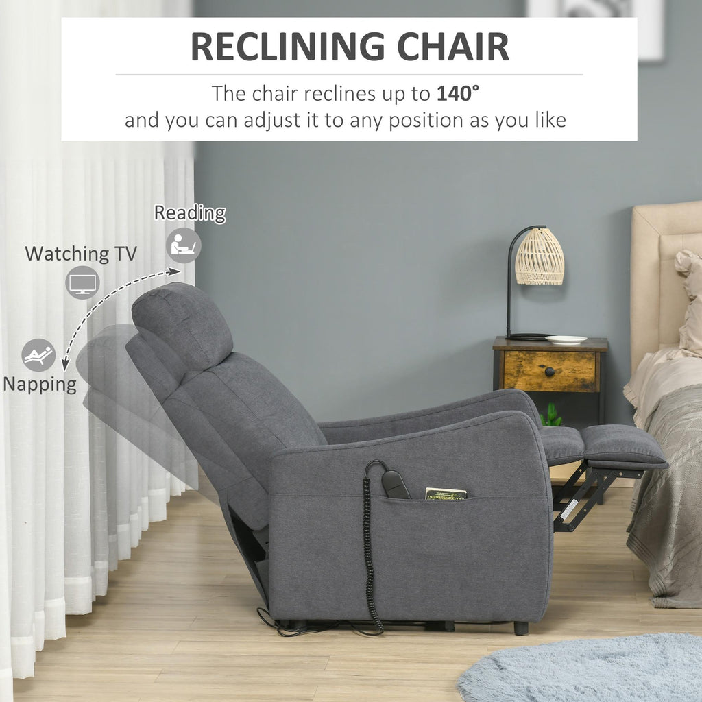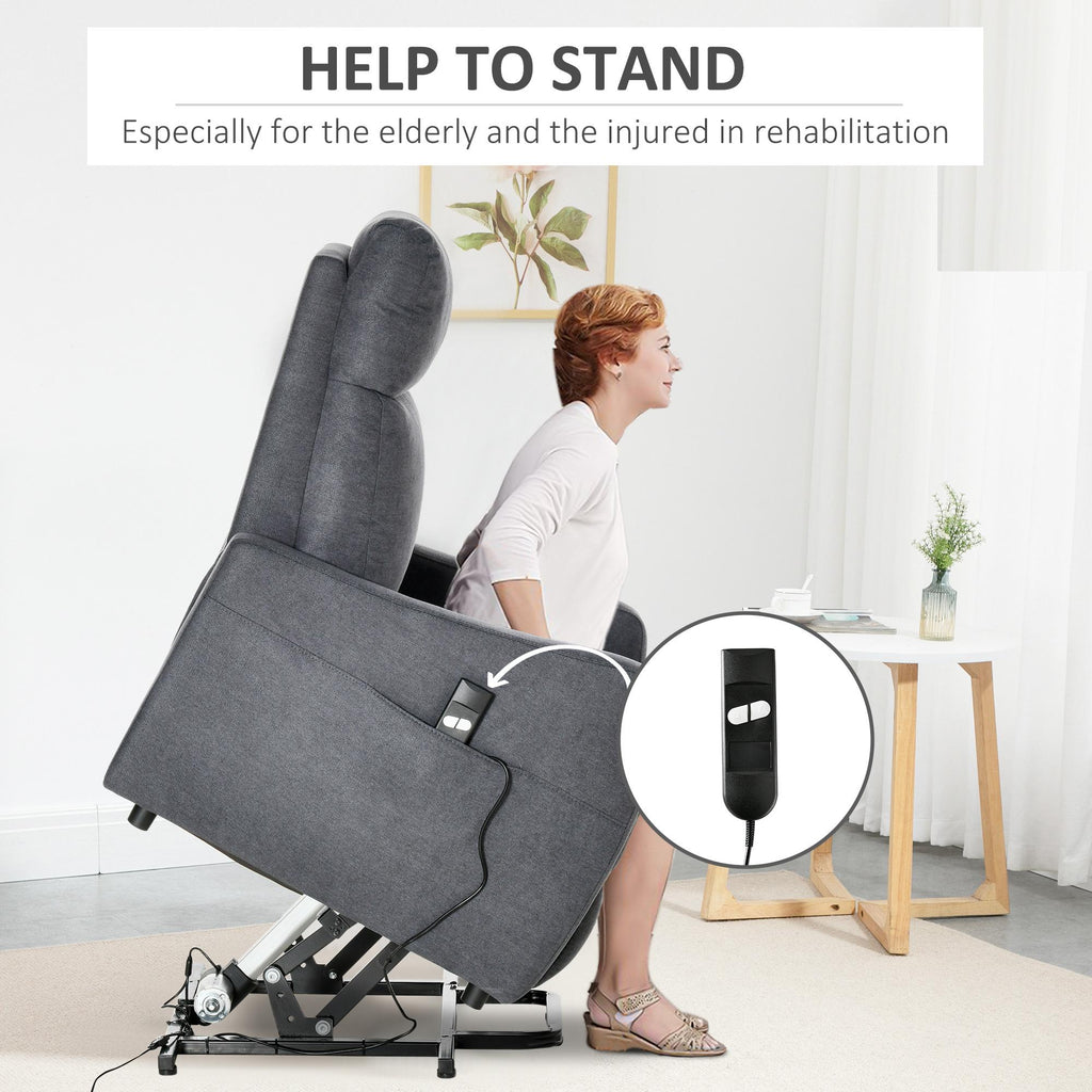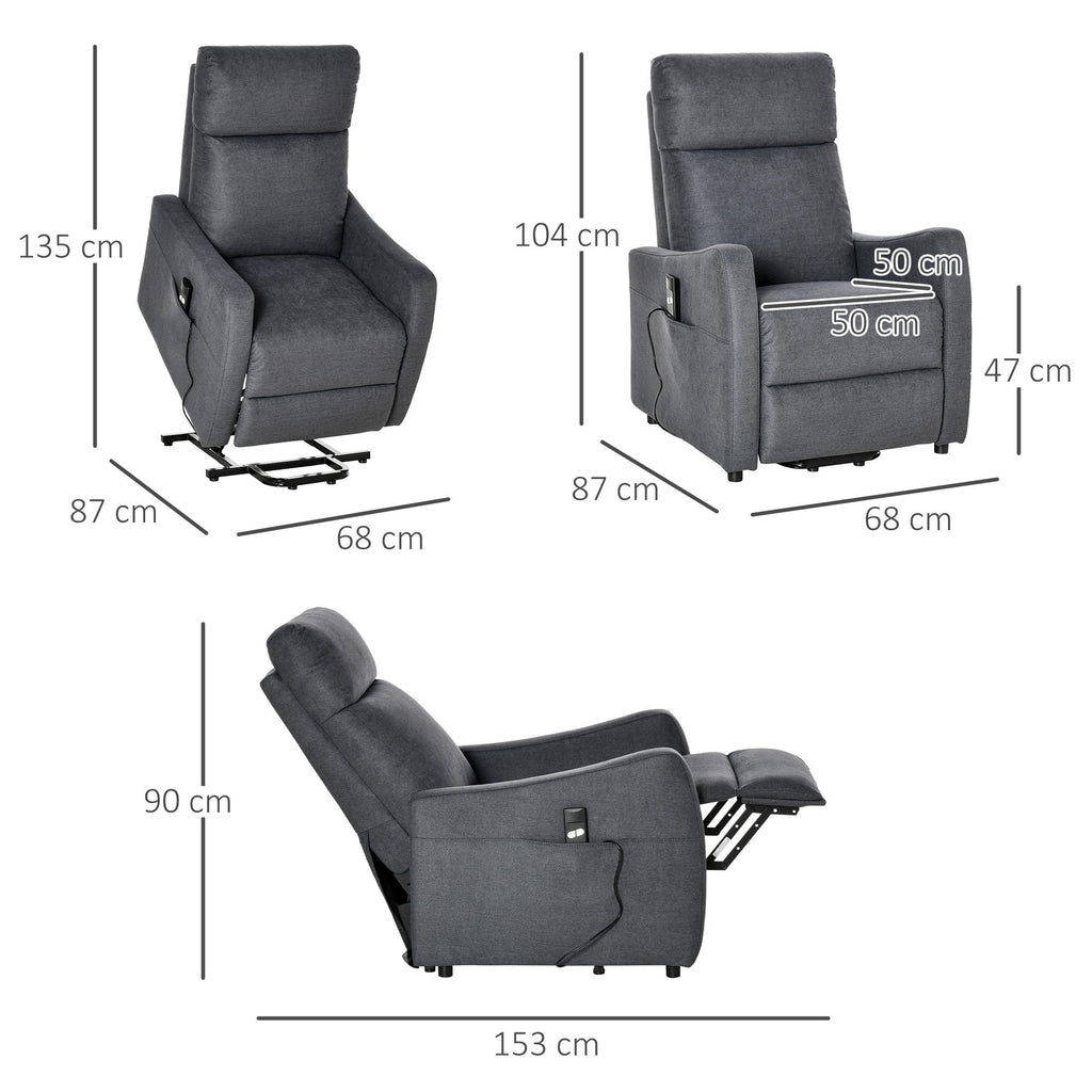 Fauteuil Élévateur Électrique 1 Moteur 68x87x104 cm en Tissu Effet Lin Noir