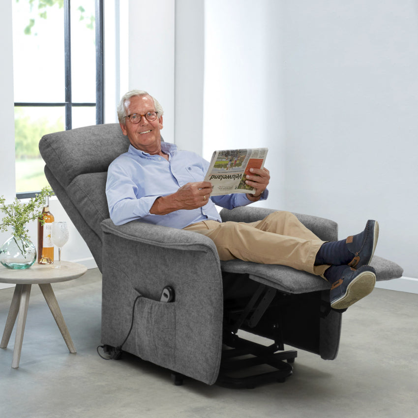 Depuis plus de 20 ans Le Roi du Relax prend soin de la santé de ses clients et le fauteuil Giorgia FX est conçu pour offrir le meilleur rapport qualité/prix du marché. Le design moderne, le rembourrage extra doux, les mécanismes de haute qualité et le revêtement en tissu parfaitement fini font de ce fauteuil releveur électrique le compagnon idéal pour le bien-être des personnes âgées et des amateurs de relaxation.
