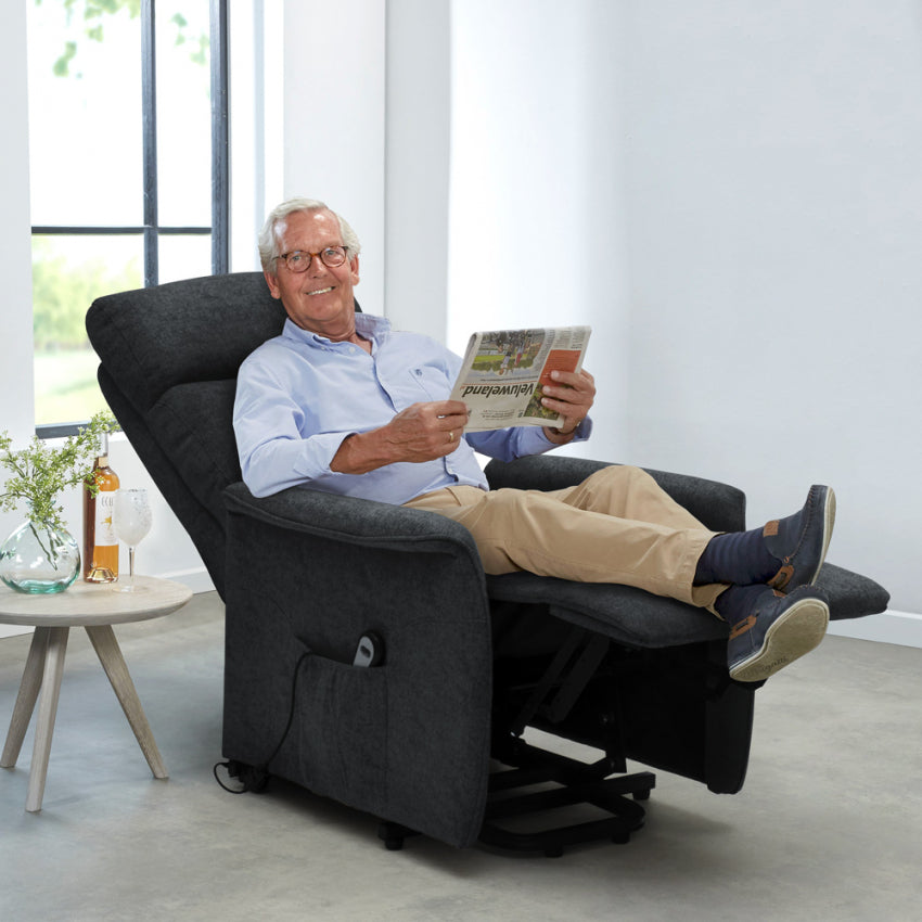 Depuis plus de 20 ans Le Roi du Relax prend soin de la santé de ses clients et le fauteuil Giorgia est conçu pour offrir le meilleur rapport qualité/prix du marché. Le design moderne, le rembourrage extra doux, les mécanismes de haute qualité et le revêtement en tissu parfaitement fini font de ce fauteuil releveur électrique le compagnon idéal pour le bien-être des personnes âgées et des amateurs de relaxation.