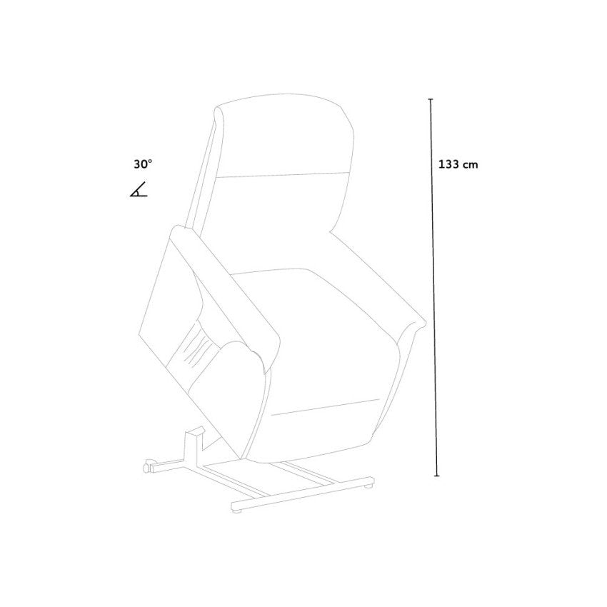 - Hauteur maximale avec système de levage de personne active : 133 cm (angle d'inclinaison du fauteuil 30°)