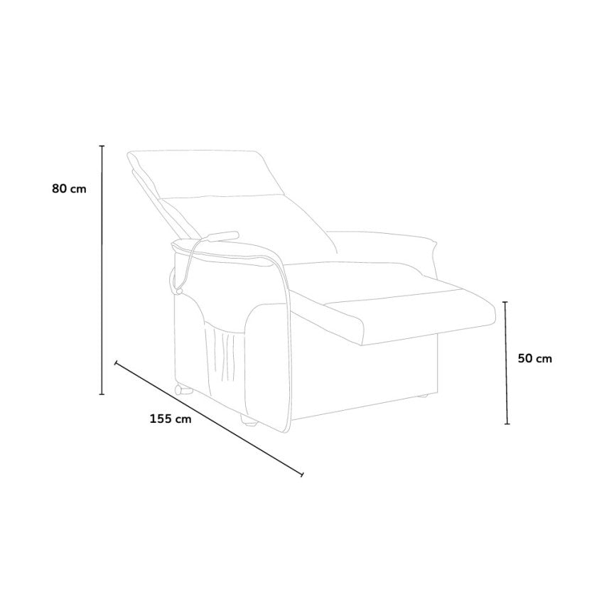 - Dimensions du fauteuil entièrement déployé : 155 x 80 cm (longueur, hauteur)