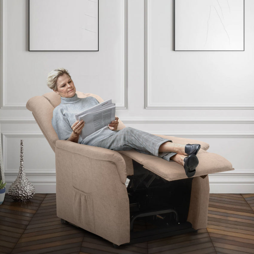 Fauteuil Releveur Electrique 1 Moteur 80x86x107 cm en Tissu Beige