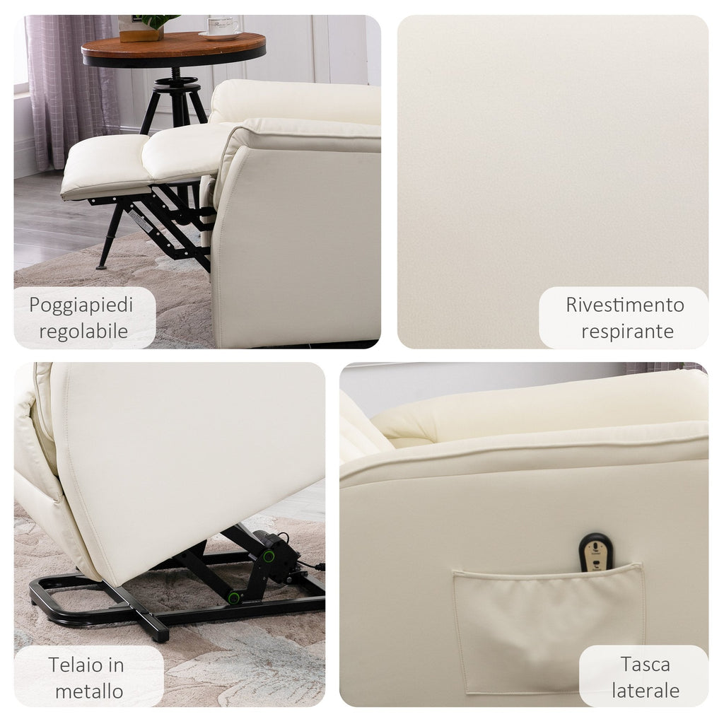 Fauteuil Releveur Electrique 1 Moteur en Similicuir Crème
