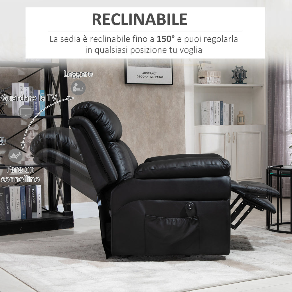 Fauteuil Releveur Electrique 1 Moteur en Similicuir Noir
