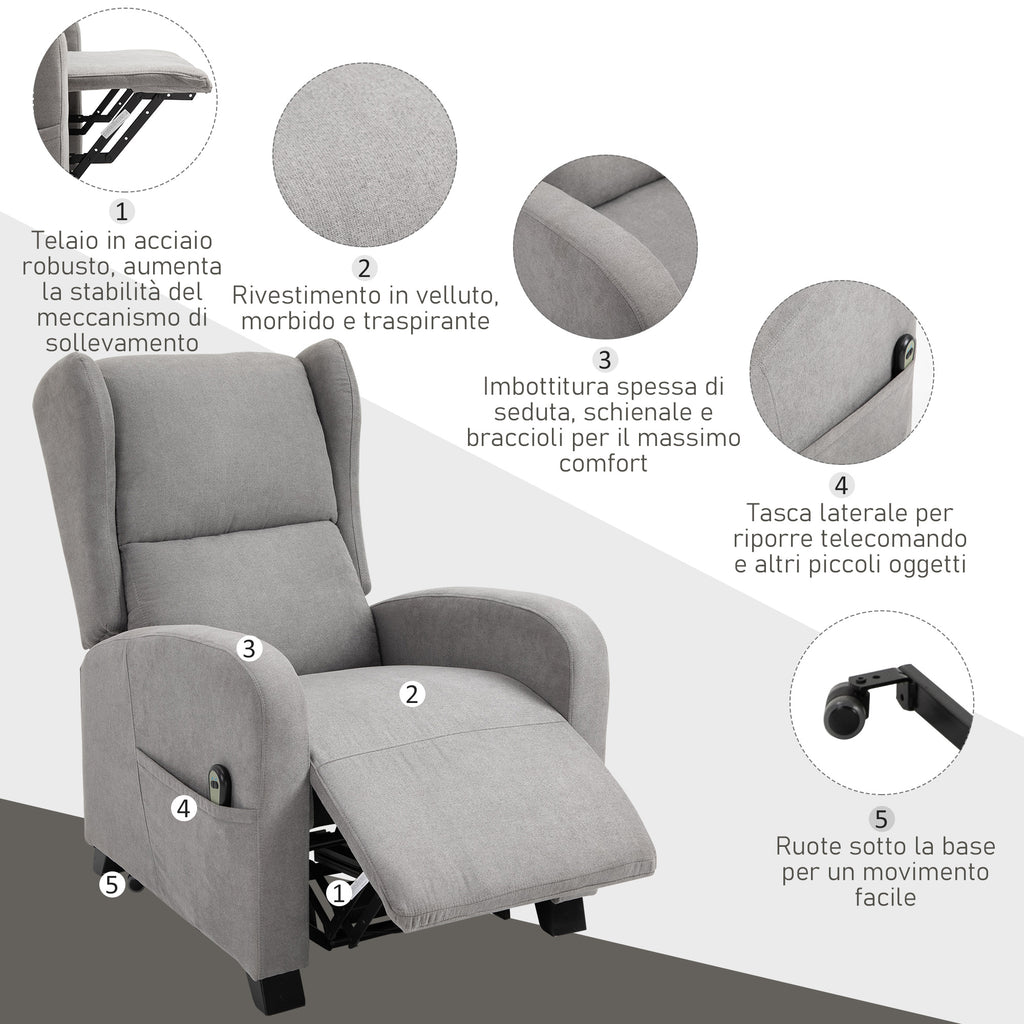 Fauteuil Releveur Electrique 1 Moteur en Tissu Gris
