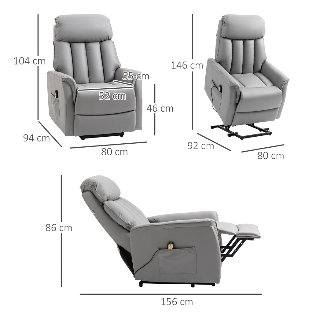 Fauteuil élévateur électrique 80x94x104 cm en simili cuir gris