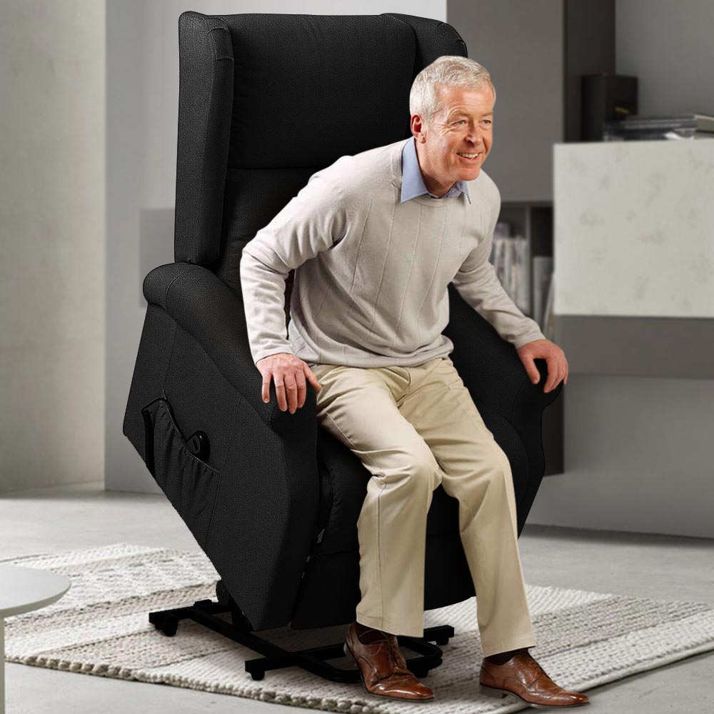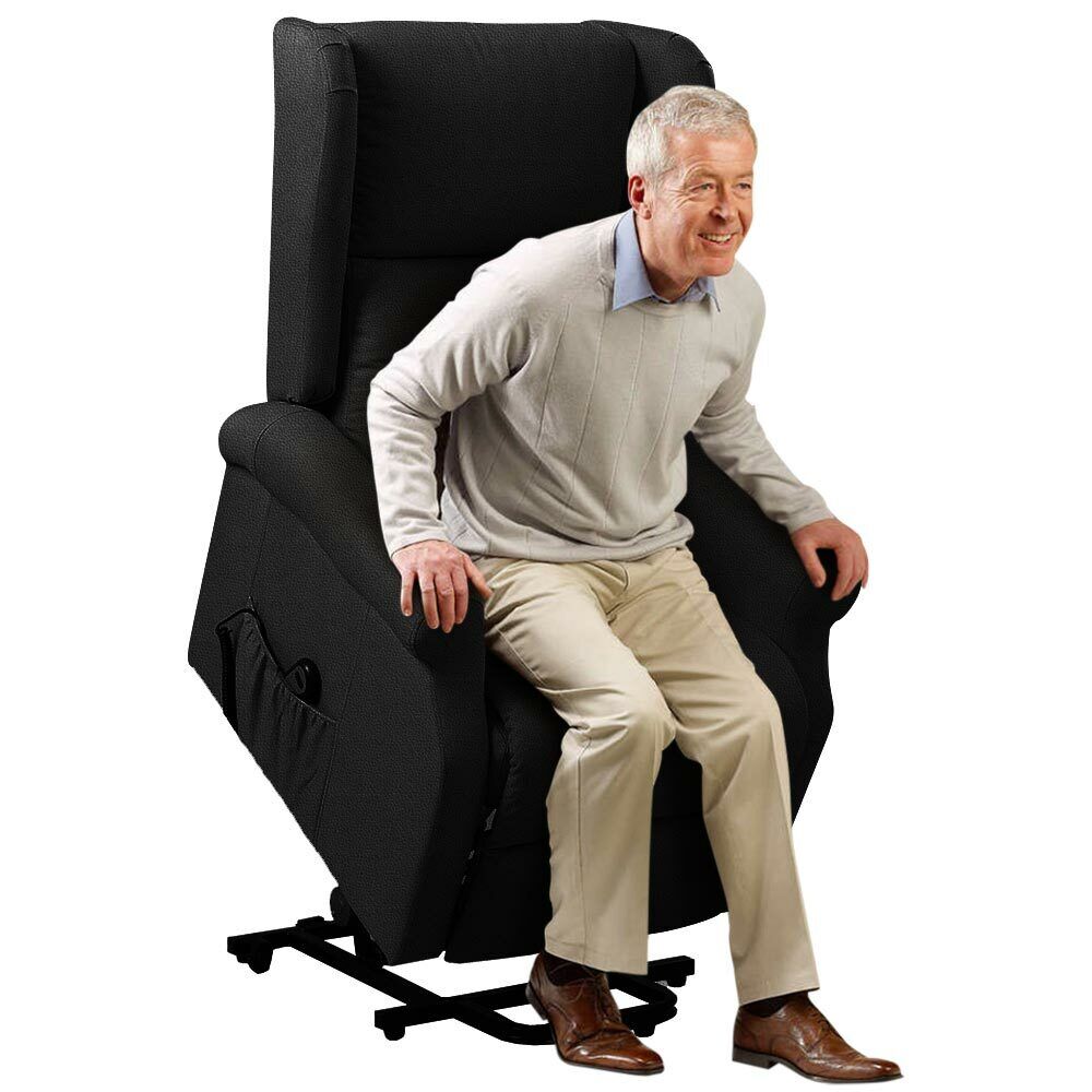 Poltrona Alzapersona Elettrica 1 Motore Reclinabile Ecopelle Nero Per Anziani