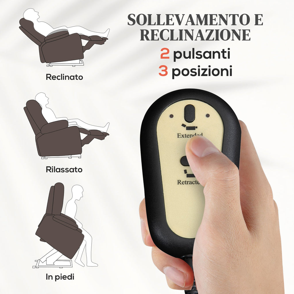 Poltrona Alzapersona Reclinabile 1 Motore con 8 Punti Massaggio 67x89x102 cm Riscaldamento e 2 Telecomandi Marrone