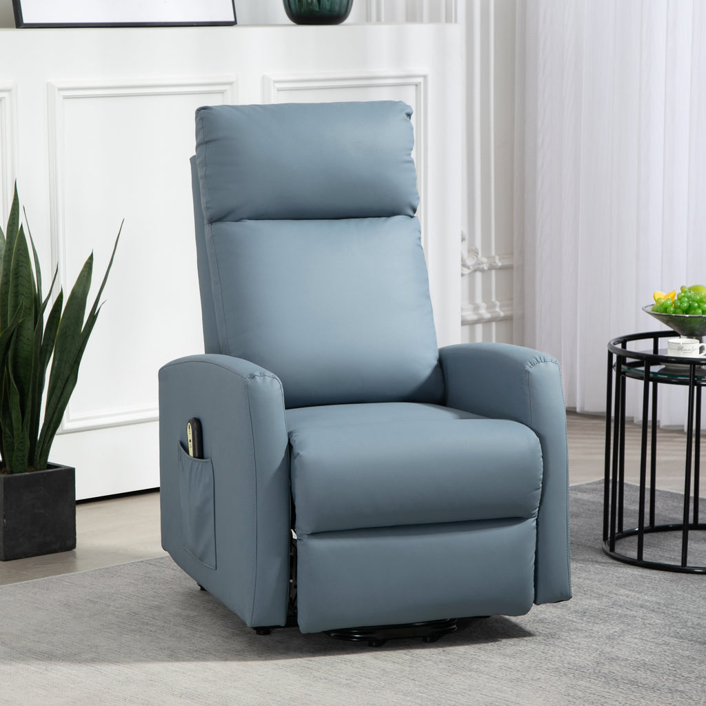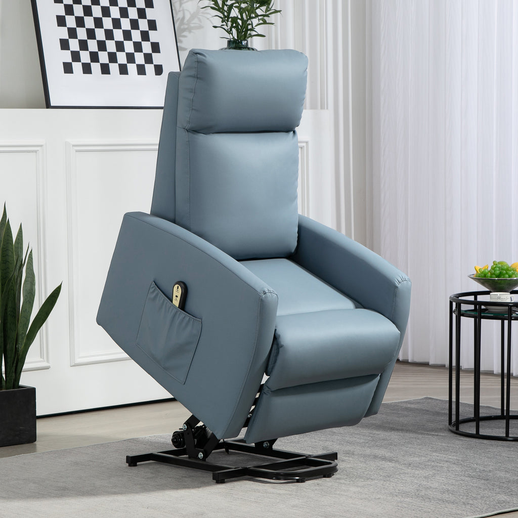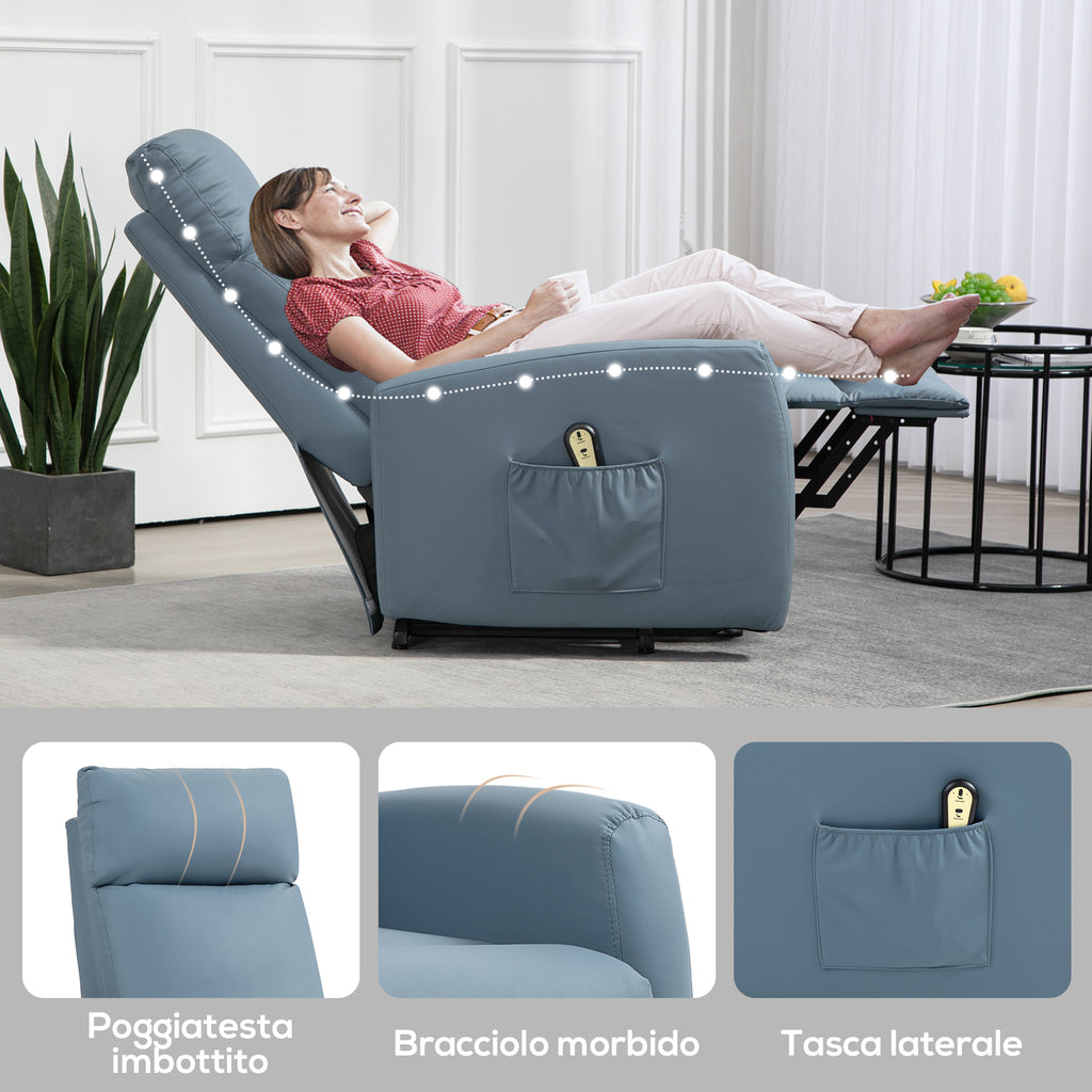 Poltrona Alzapersona Reclinabile a 145° con Telecomando in Pelle PU Azzurro
